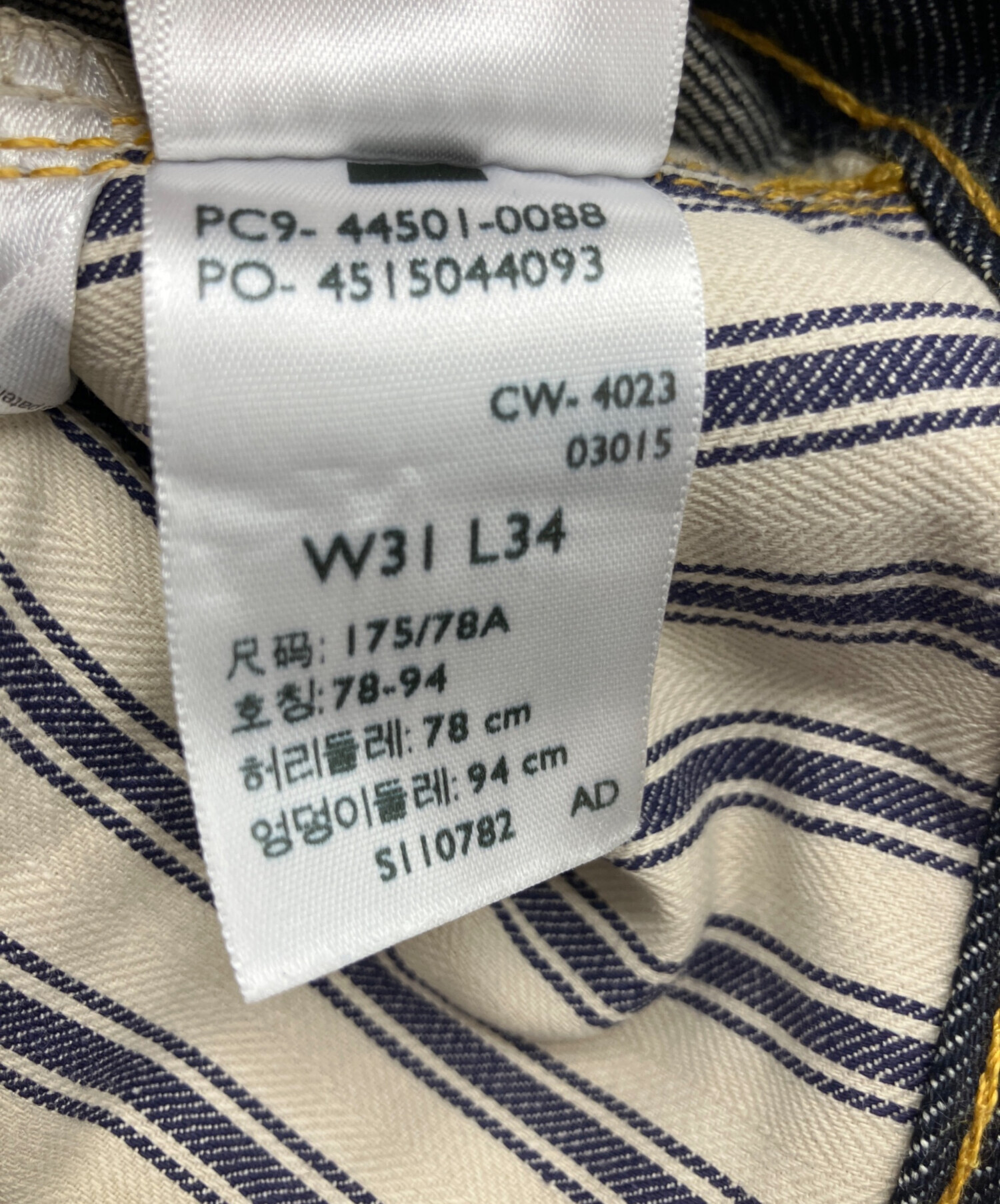 タグ表記サイズ:SIZE 78.5cm (W31)( 参考サイズ:不明 )