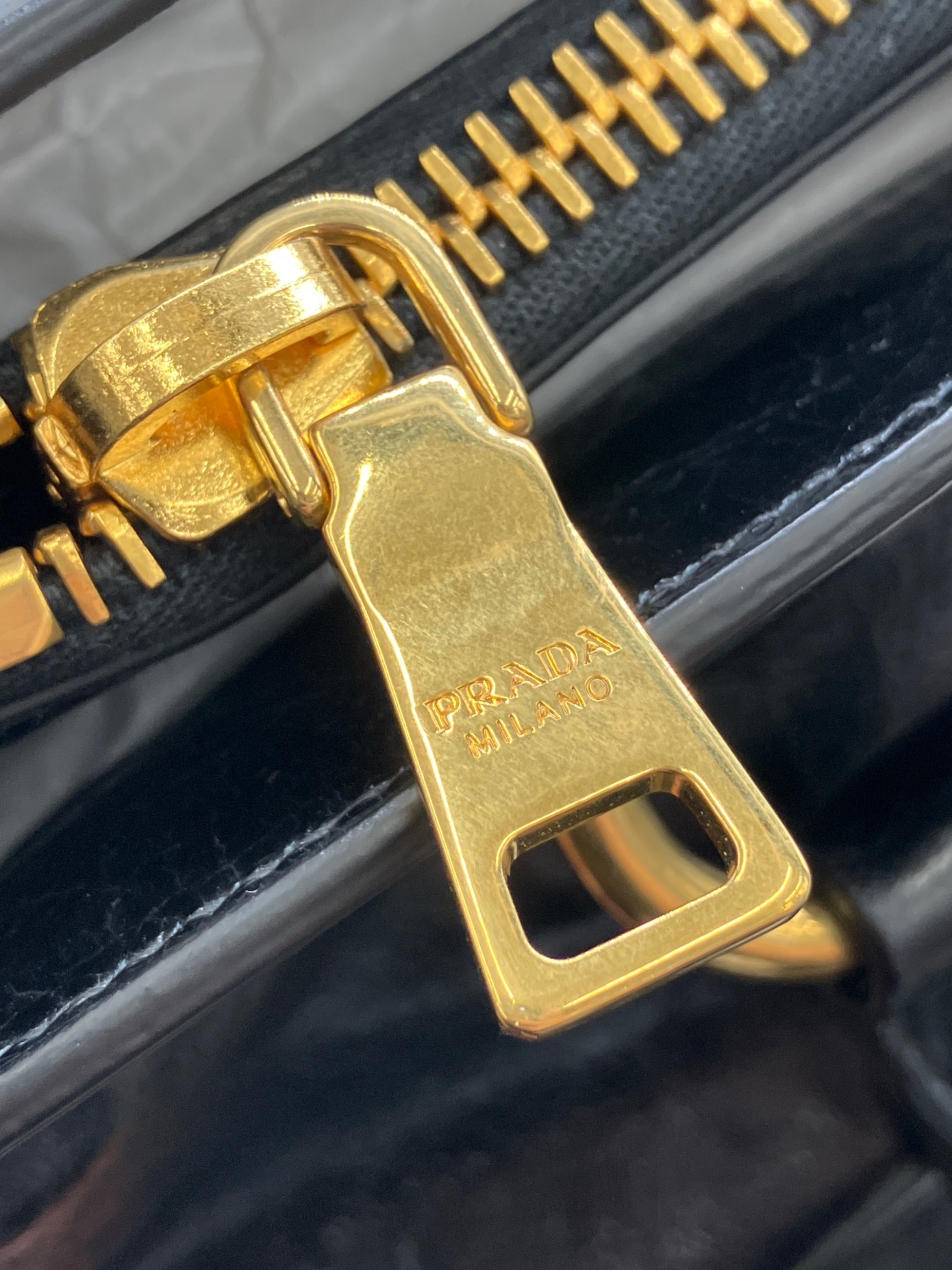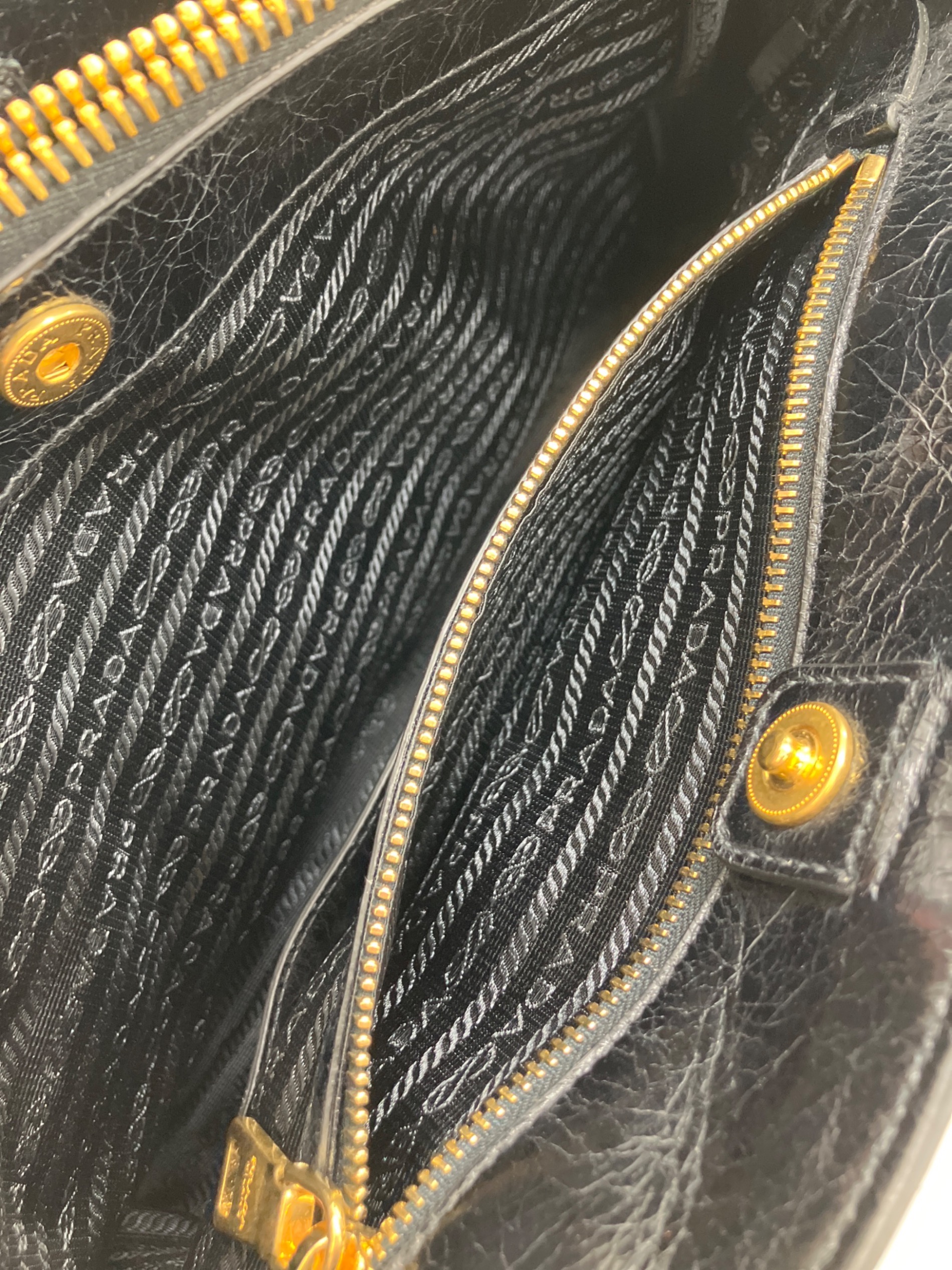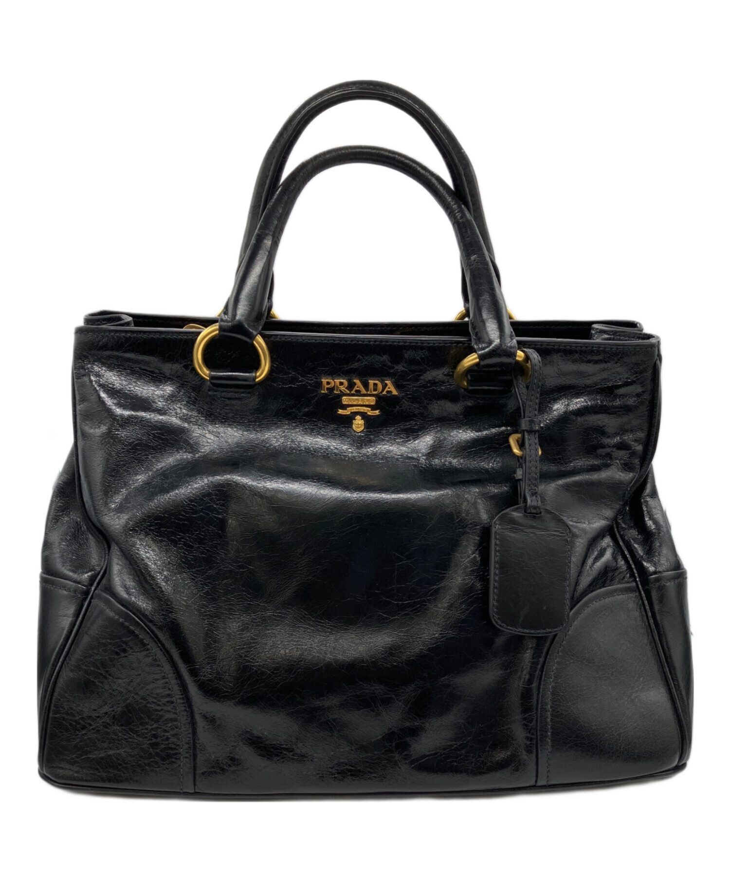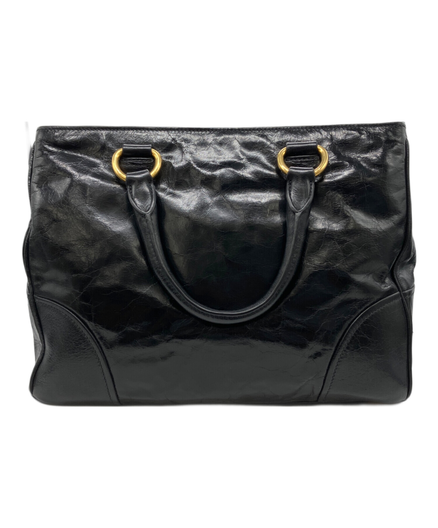 • PRADA(プラダ)PRADA (プラダ) VITELLO SHINE レザートートバッグ ブラックの古着・服飾アイテム ハンドルキズ有