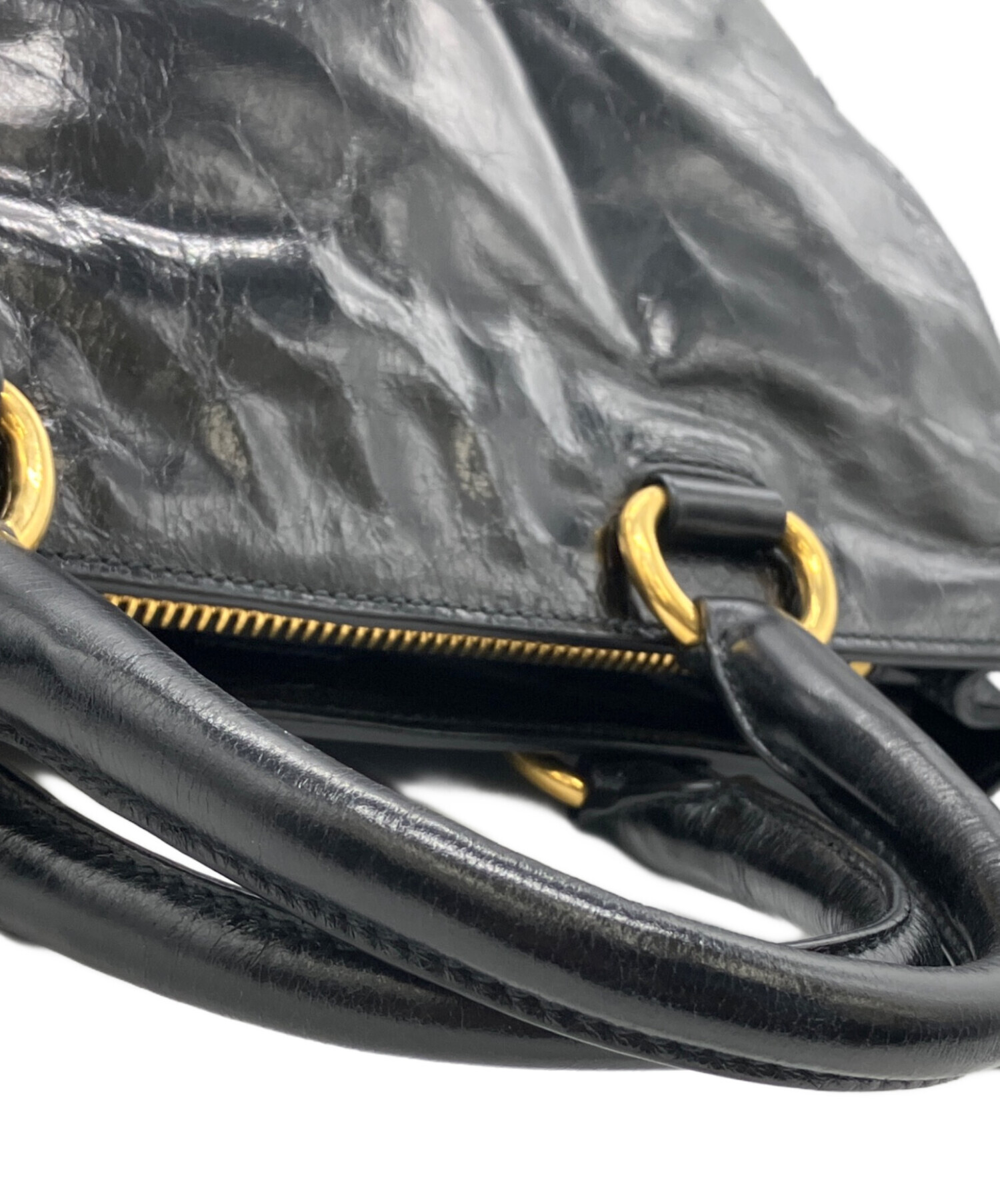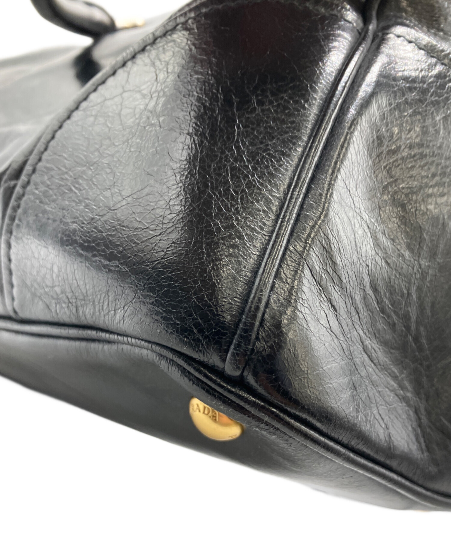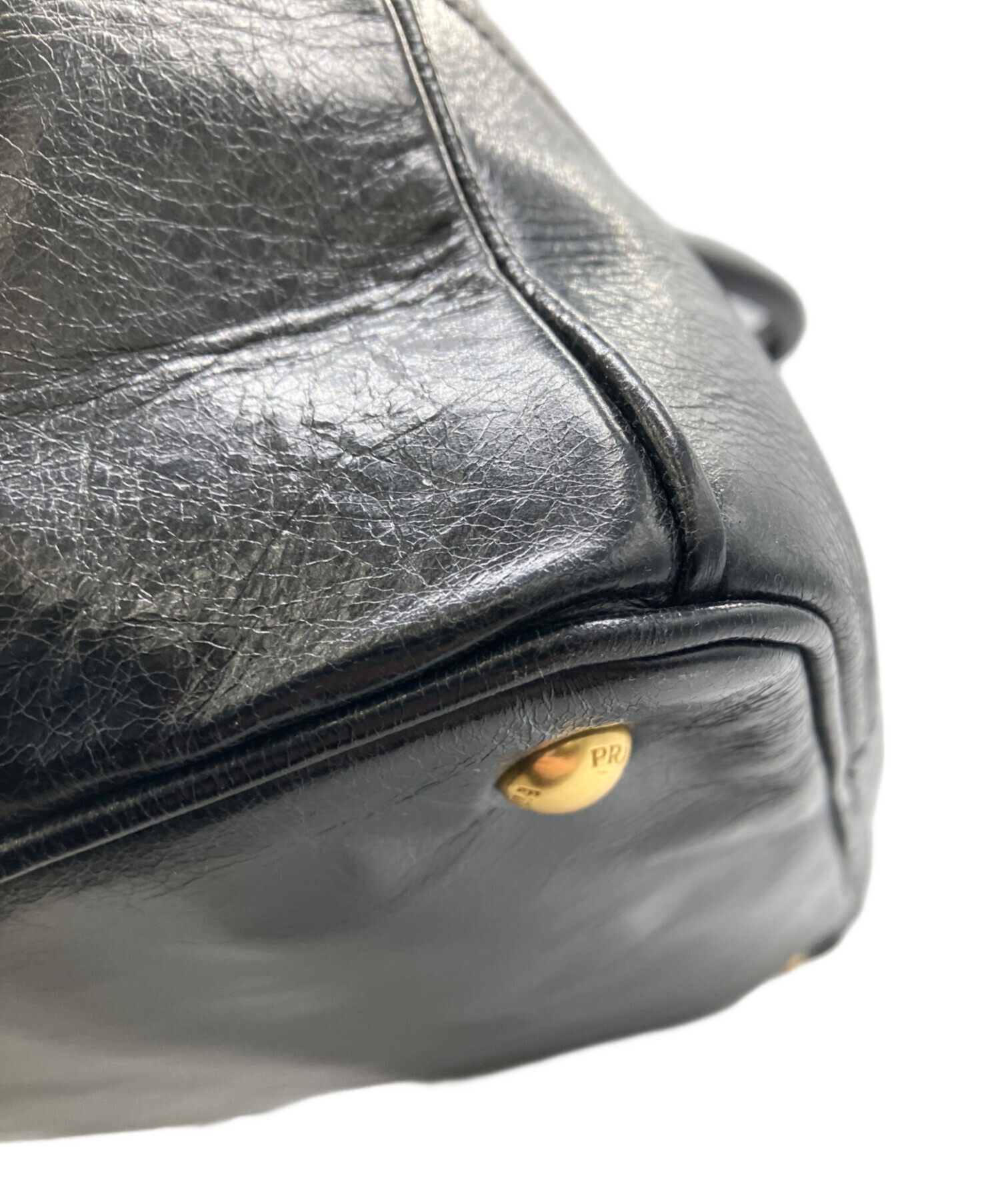 • PRADA(プラダ)PRADA (プラダ) VITELLO SHINE レザートートバッグ ブラックの古着・服飾アイテム 金具傷