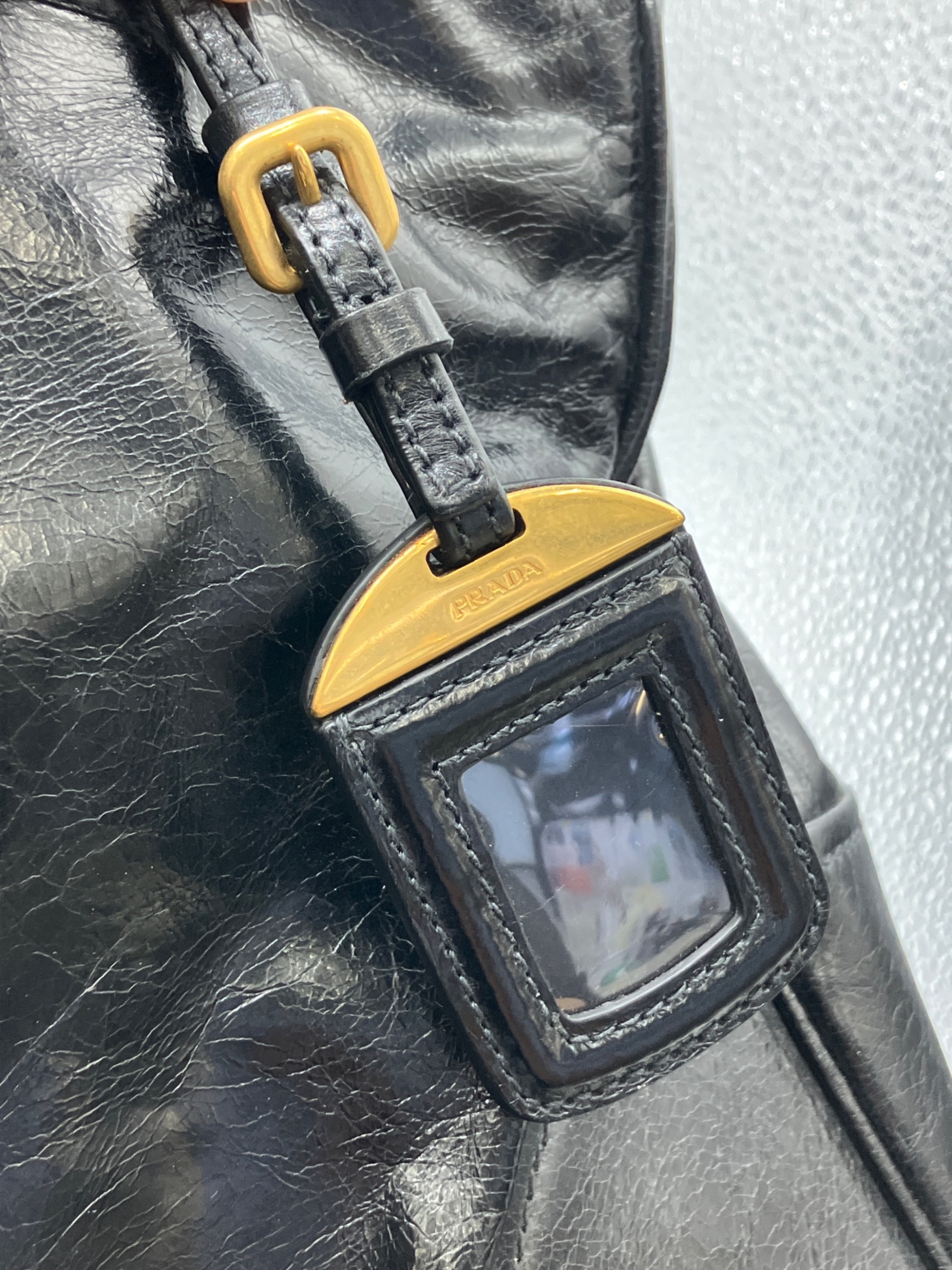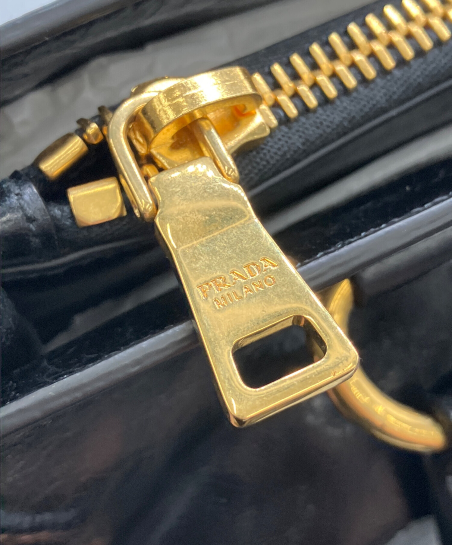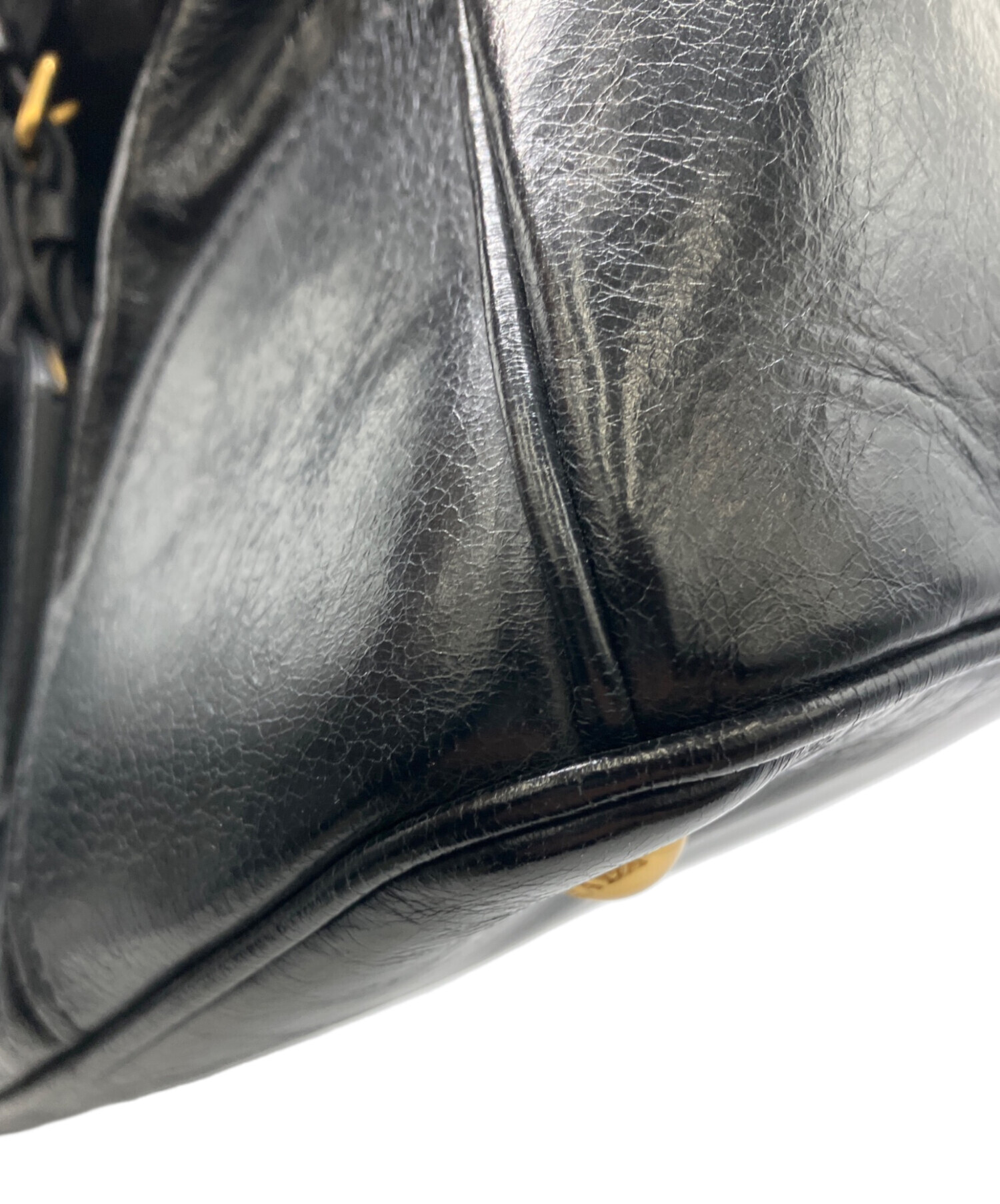 • PRADA(プラダ)PRADA (プラダ) VITELLO SHINE レザートートバッグ ブラックの古着・服飾アイテム 金具傷