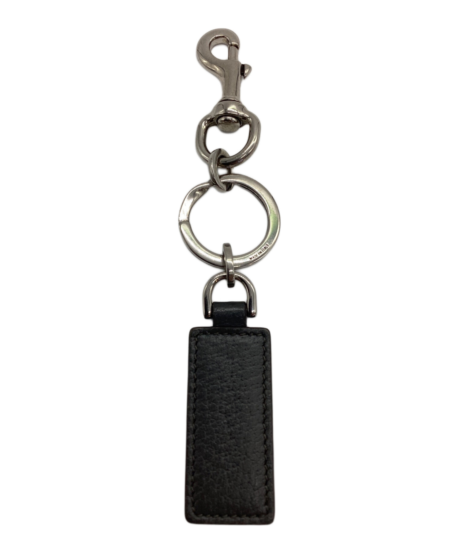 | スタッフコメント | 鍵をまとめるキーリングに加え、バッグ等に簡単に取り付けられるフッククロージャーを備えた実用的なアクセサリーです シルバーカラーのメタルパーツには「GUCCI」のロゴが刻印されており、細部まで高級感が漂うアイテムとなっております。 |