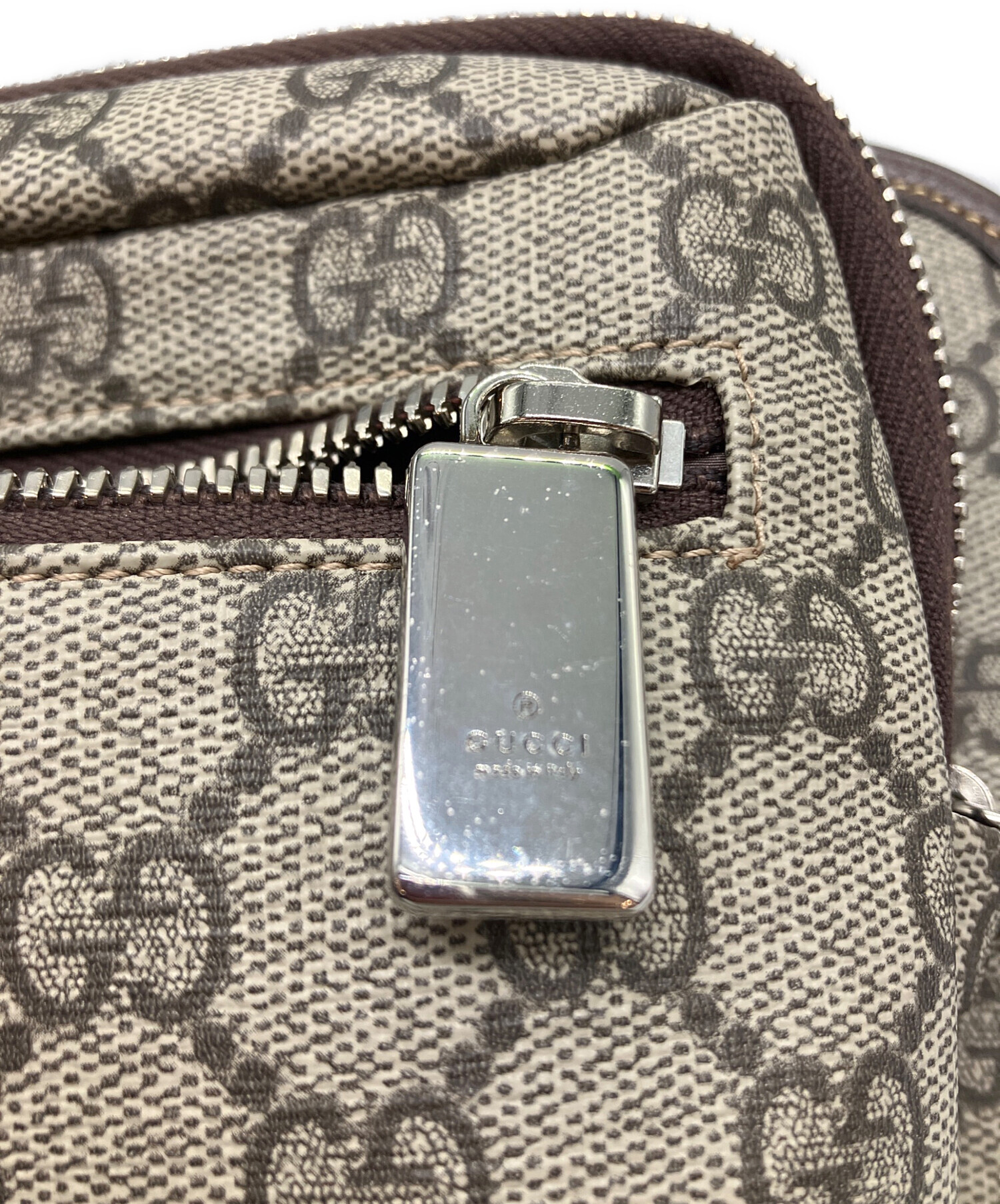 | スタッフコメント | グッチの象徴的なGGパターンが施されたGGスプリームキャンバスを使用しており、クラシックで洗練された外観が特徴です。 ウエストポーチまたはボディバッグとして使用できる汎用性の高いデザインで、カジュアルからきれいめなファッションまで合わせやすいアイテムとなっております。 |