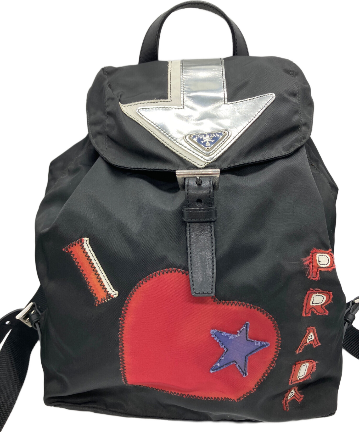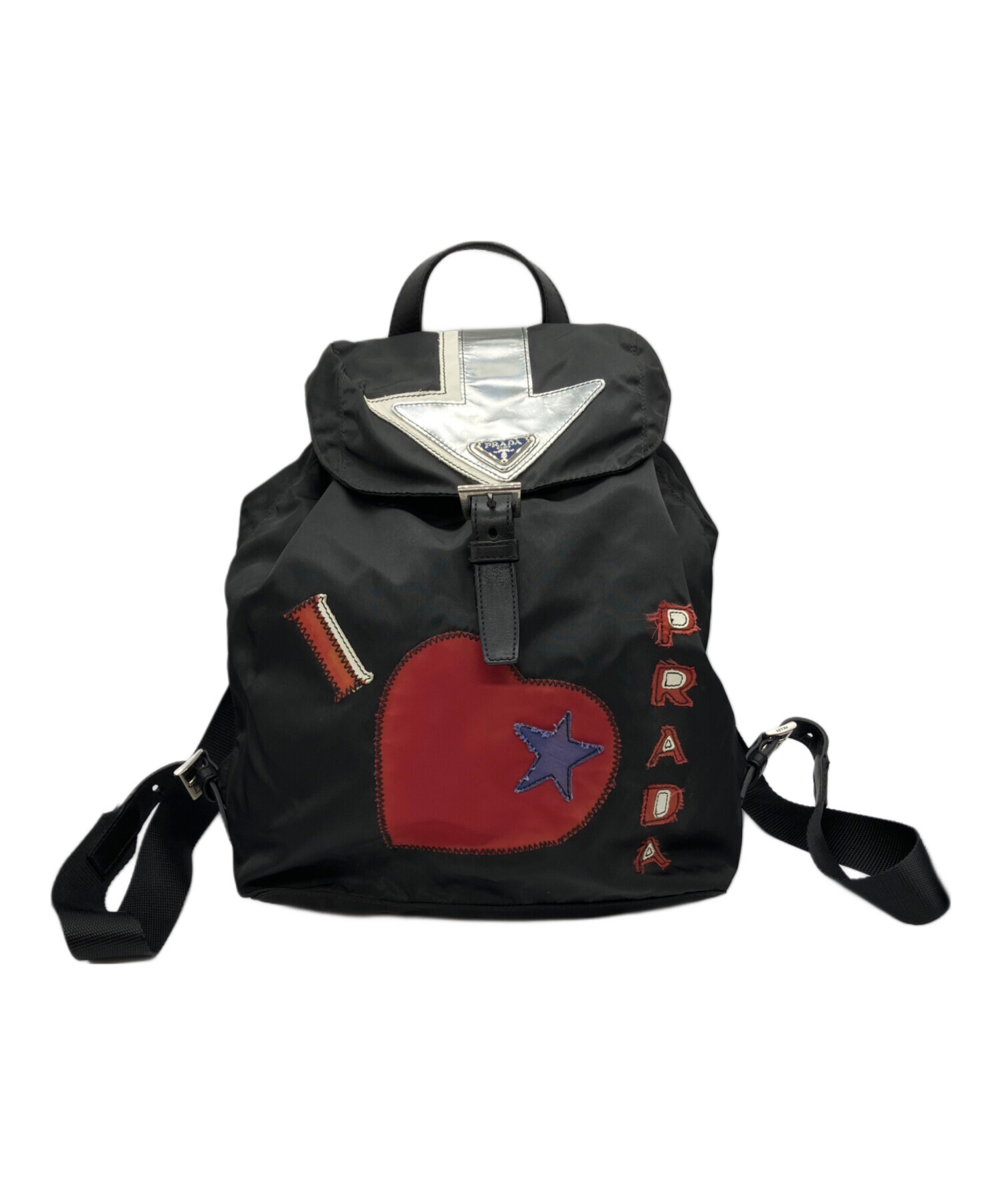 | スタッフコメント | PRADA(プラダ)ナイロンリュック PRADAの代表的なナイロン素材にハートモチーフのワッペンが施されたリュック。 背面にはトライアングルロコがワンポイントであしらわれており、ポップなデザインの中に上品さを感じられるデザインです。 |