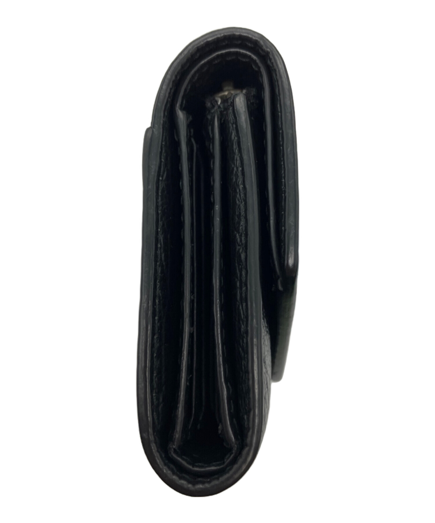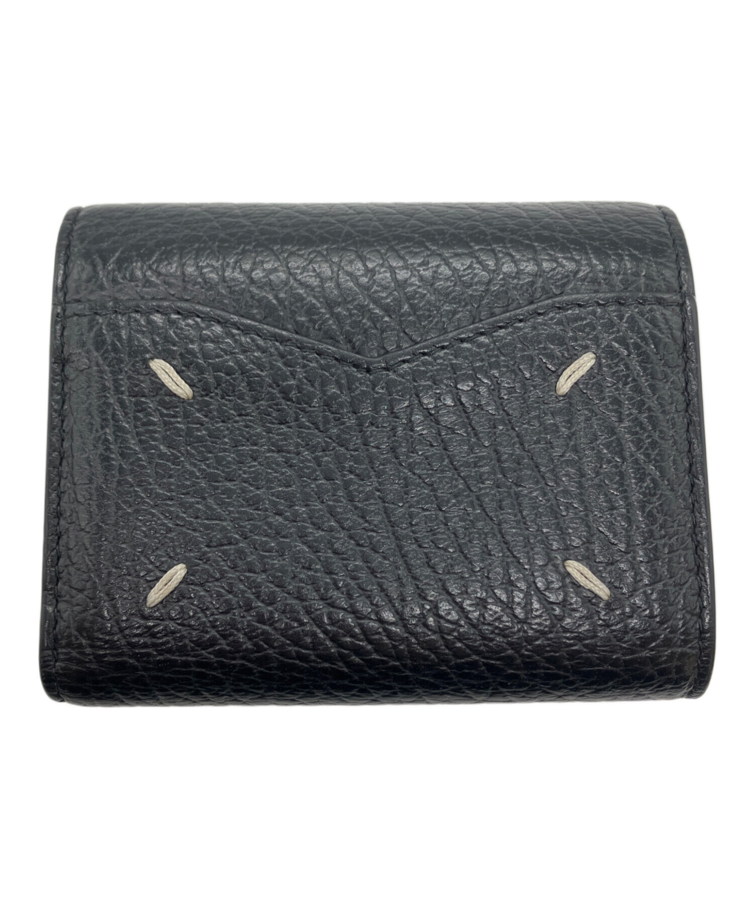 スタッフコメント ブランドの象徴である四つ糸のステッチが、ミニマルなデザインの中にモードな存在感を主張する三つ折り財布。