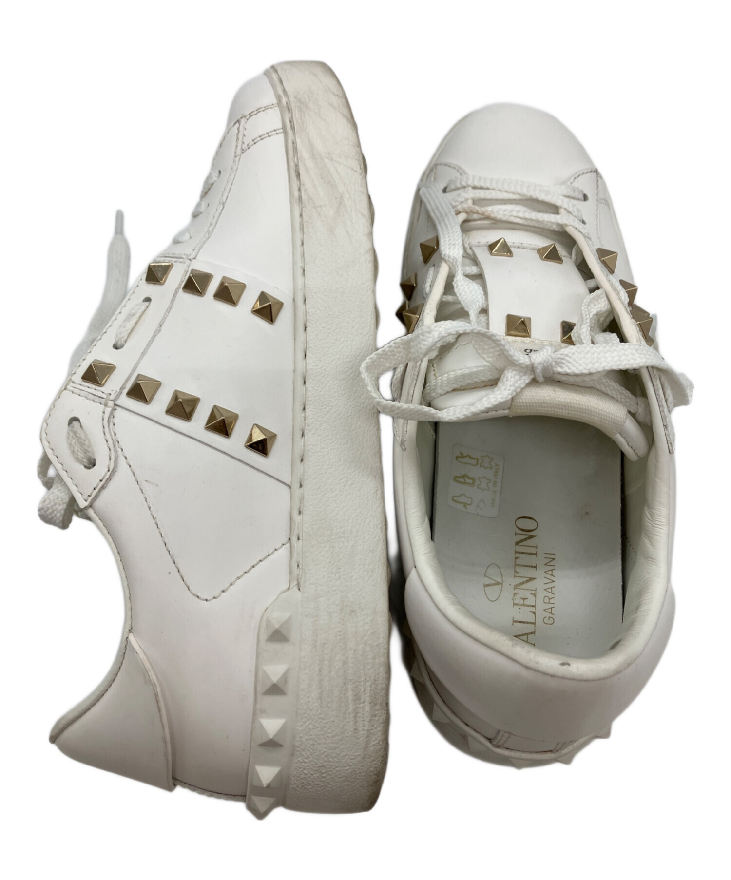 | スタッフコメント | VALENTINO GARAVANI(ヴァレンティノ・ガラヴァーニ) ホワイトレザーの上品さと、ブランドの象徴であるロックスタッズのアクセントが魅力です。カジュアルながらラグジュアリーな存在感があり、幅広いコーディネートを格上げしてくれます。 |