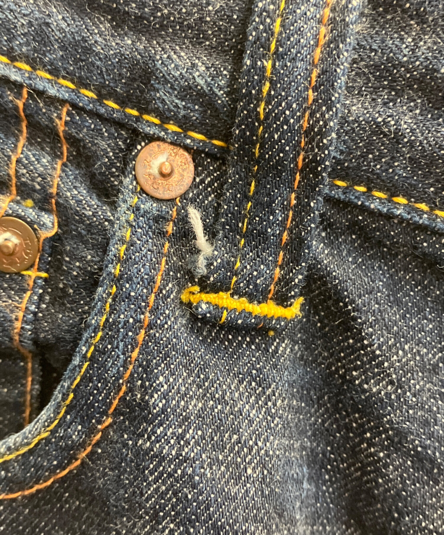 スタッフコメント 深みのあるインディゴブルーが美しい、ストレートシルエットのデニムパンツです。まだ色がしっかりと残っている「真紺」の状態ですので、これから履き込むことで自分だけの「アタリ」や「色落ち」を育てていける、育て甲斐のある一着です。