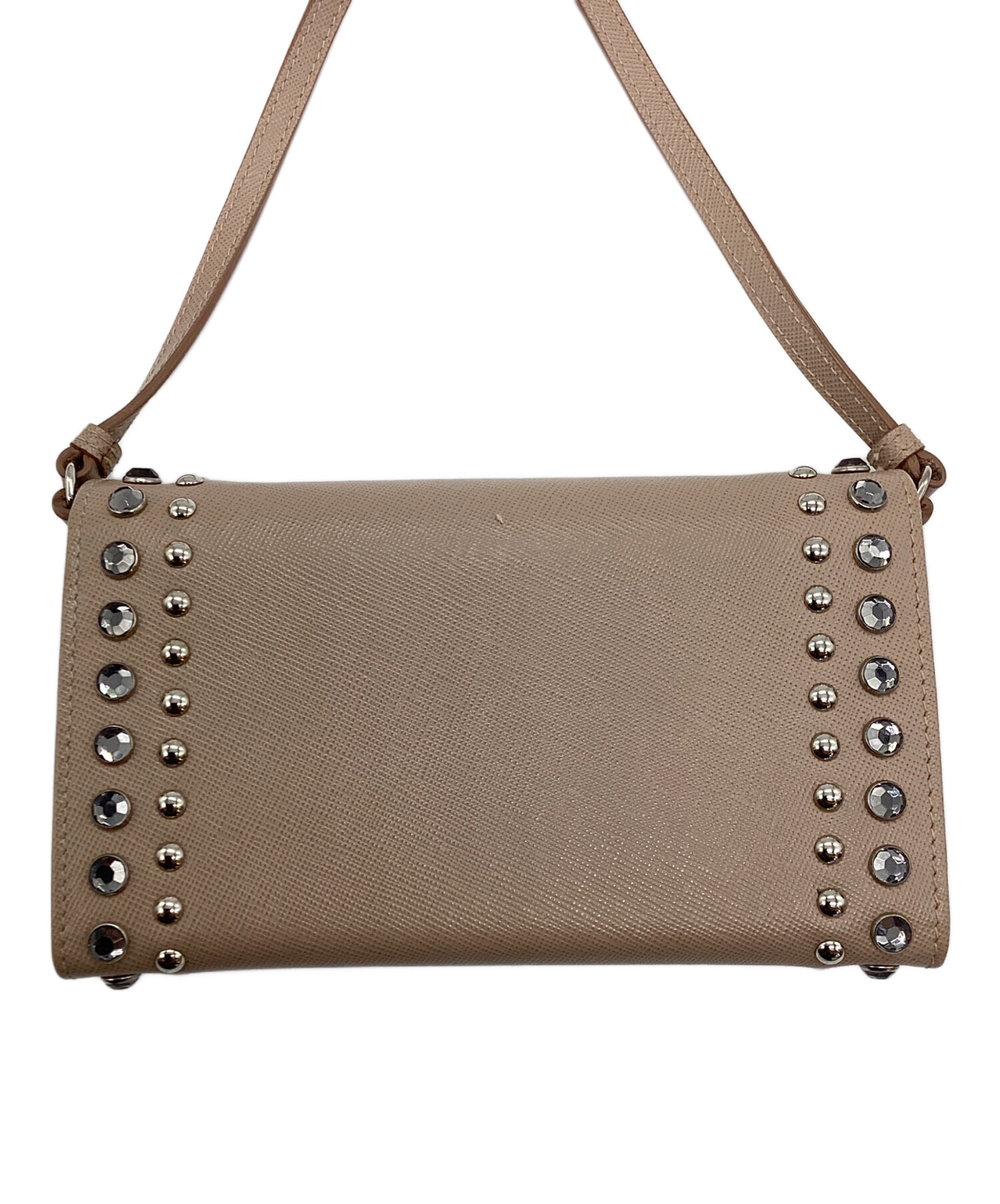 | スタッフコメント | 「サフィアーノ(Saffiano)」は、細かい筋模様の型押し加工を牛革(カーフレザー)に施した素材です。こちらの商品はストラップが取り外し可能で、外して長財布として、取り付けて小さめのショルダーバッグとしてご使用いただけます。 |