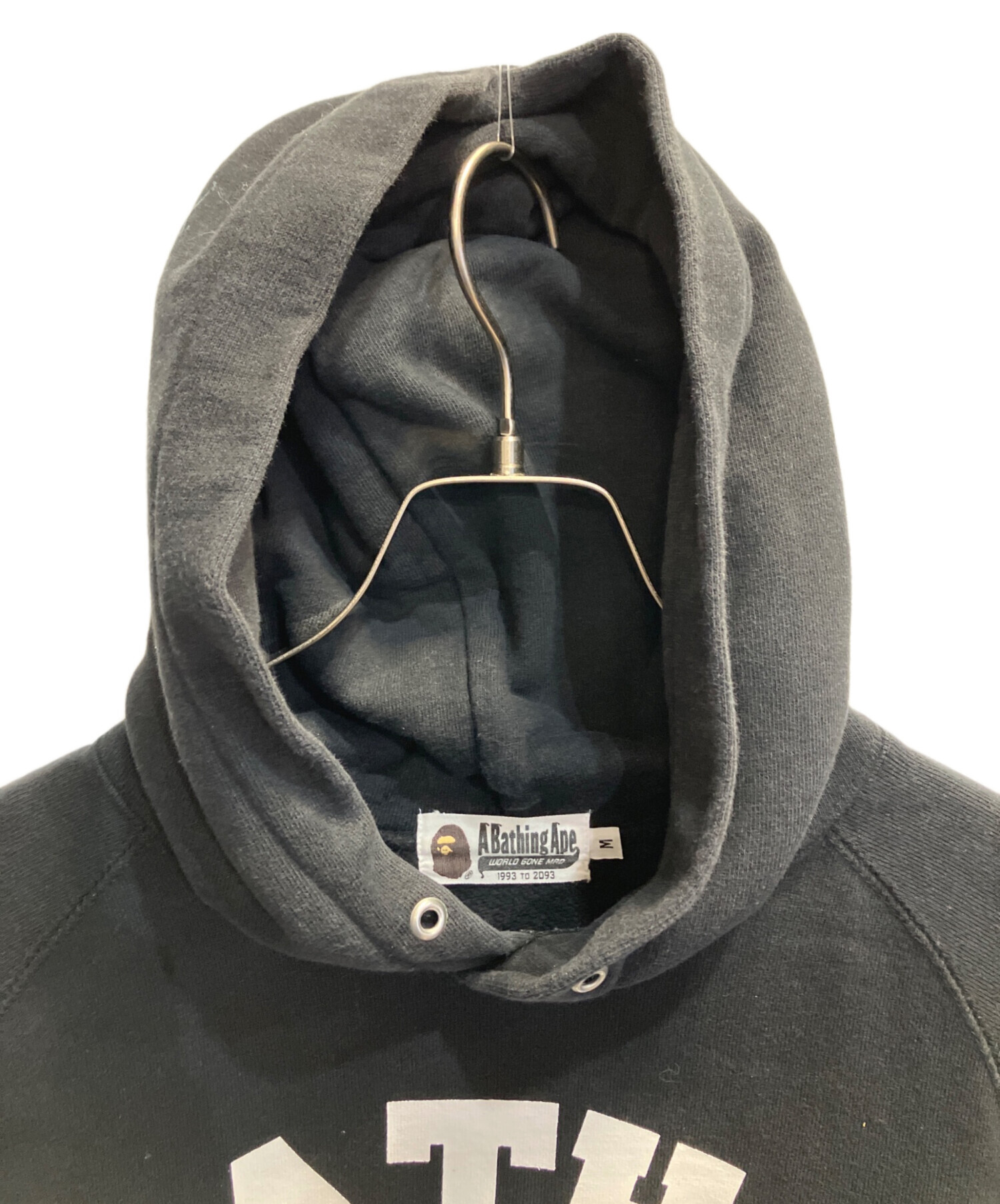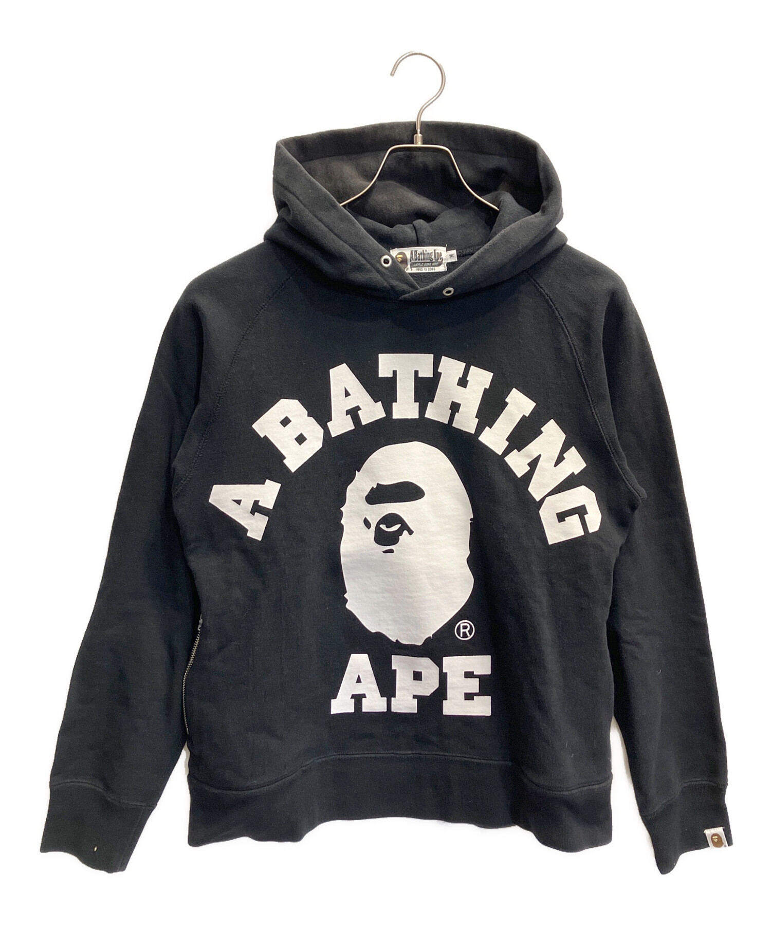 | スタッフコメント | カレッジロゴとエイプヘッドをフロントに配した、存在感のあるプルオーバーパーカーです。どんなスタイルにも合わせやすいブラックカラーで、両サイドにジップポケットが施され、機能性も抜群です。 |