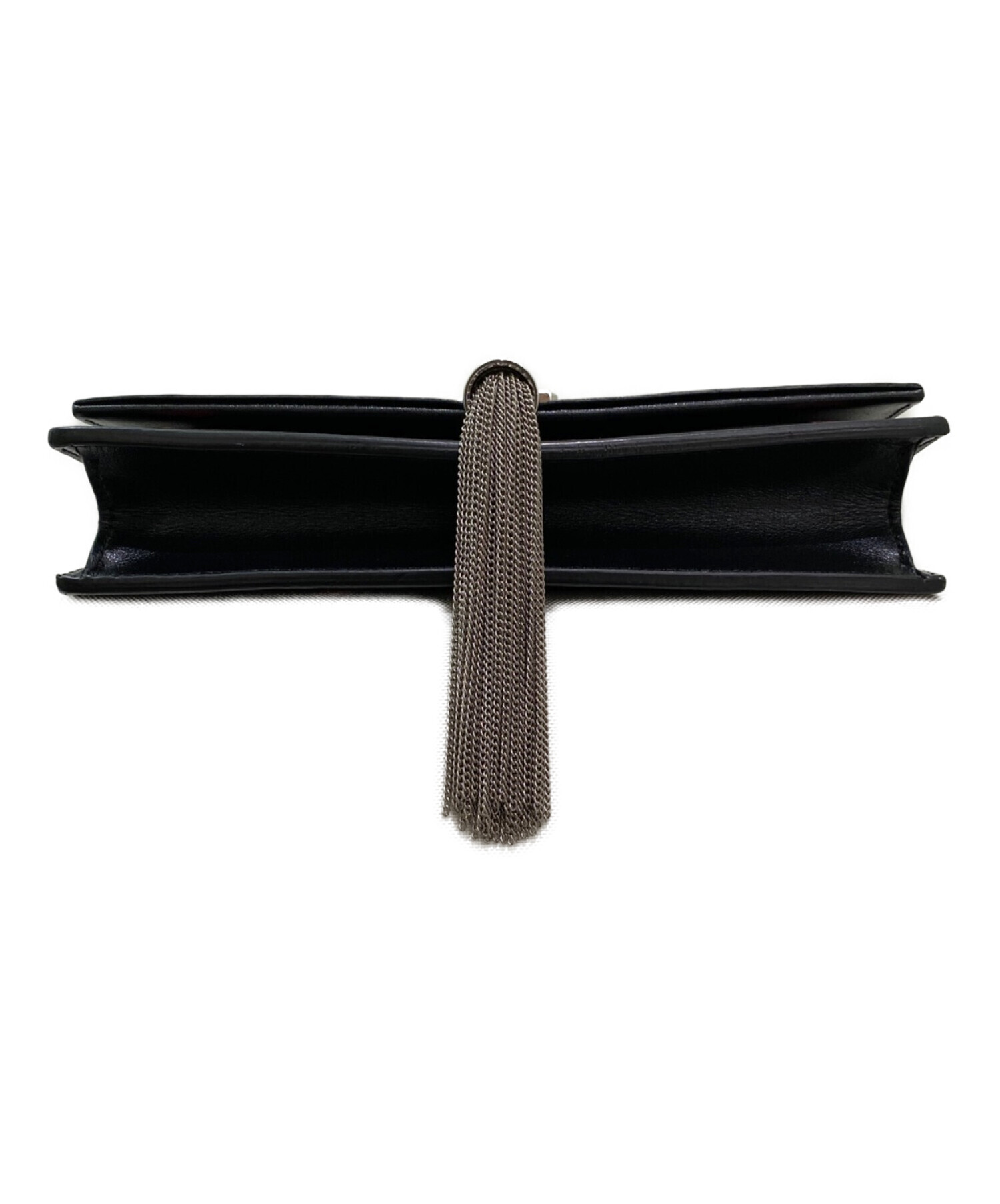 | スタッフコメント | クラシックなケイトバッグをシックにアレンジしたチェーンウォレットになります。フロントに施されたシルバーメタルのYSLモノグラムとタッセルが特徴です。 カードスロットとポケットを備えた収納力もあり、ショルダーバッグとしてもお使いいただけます。ハートとリップのデザインもワンポイントになっています。 |