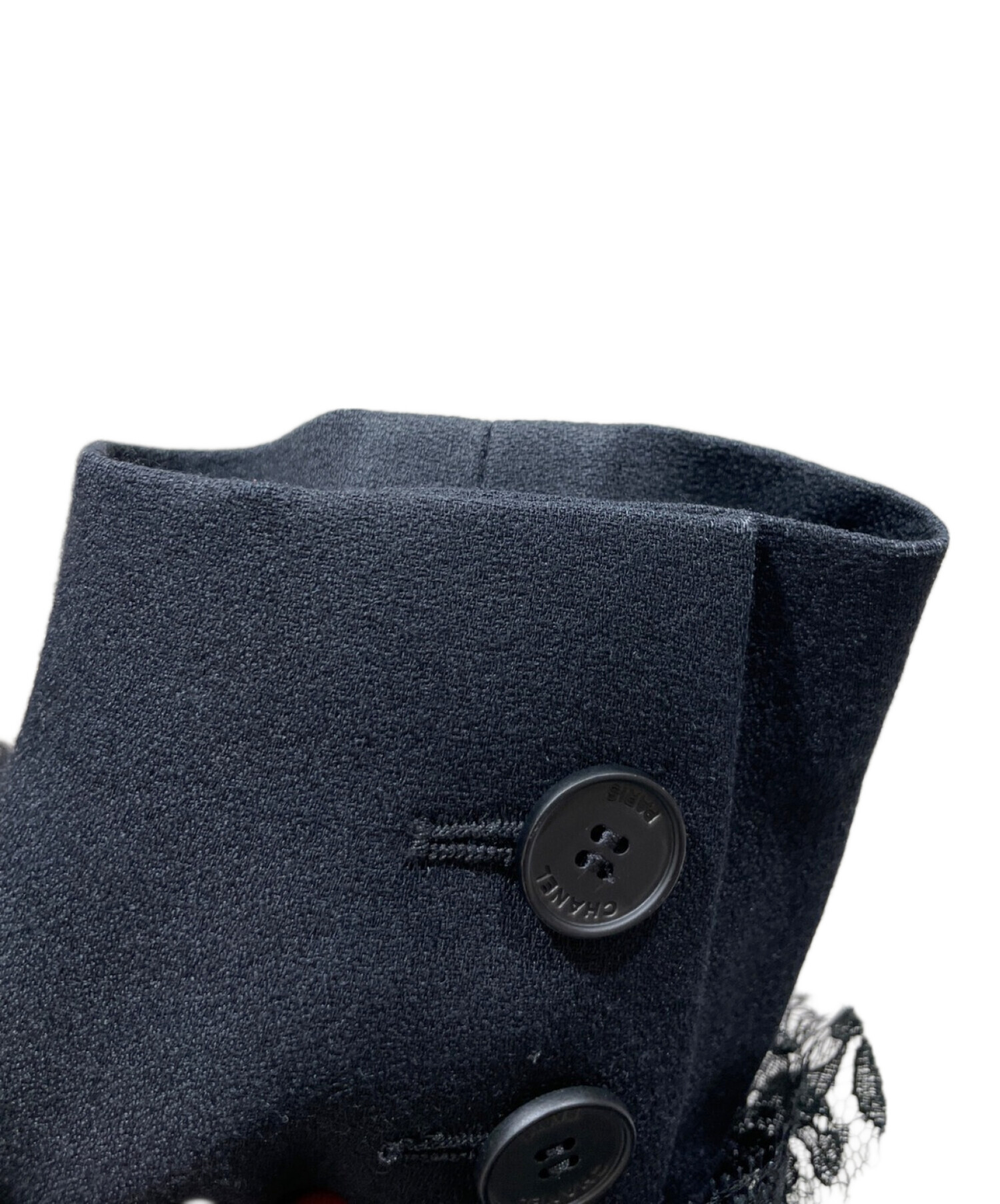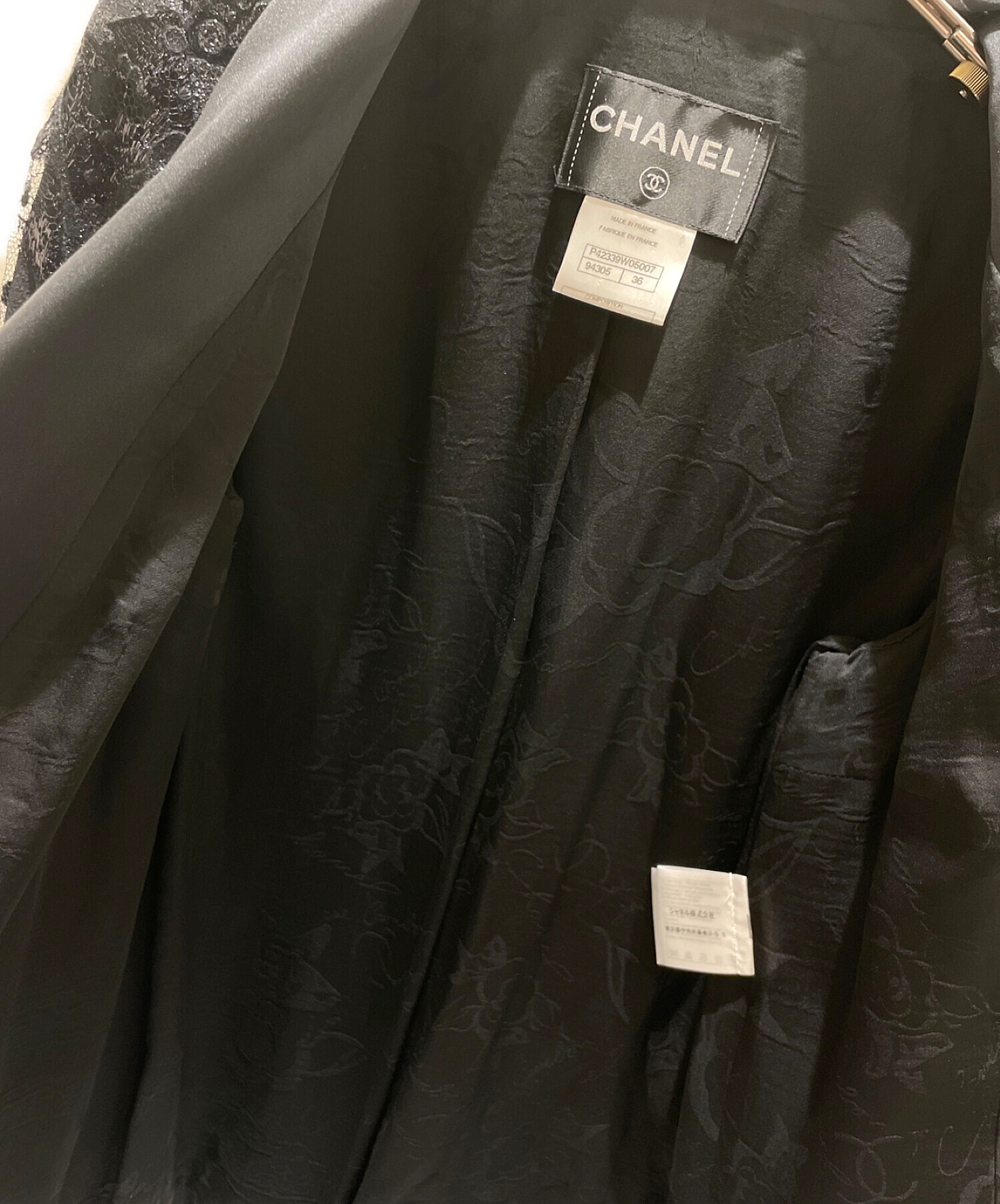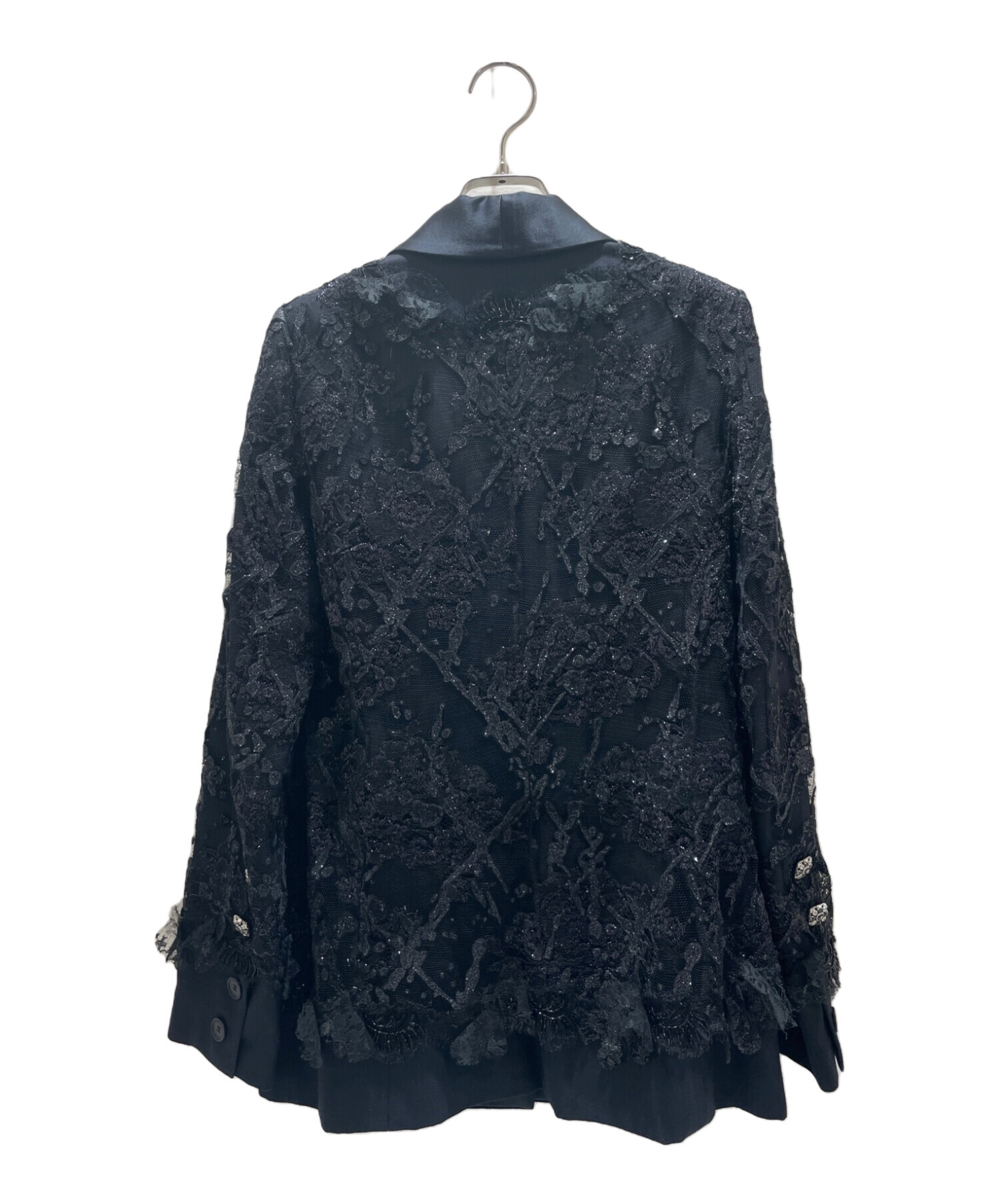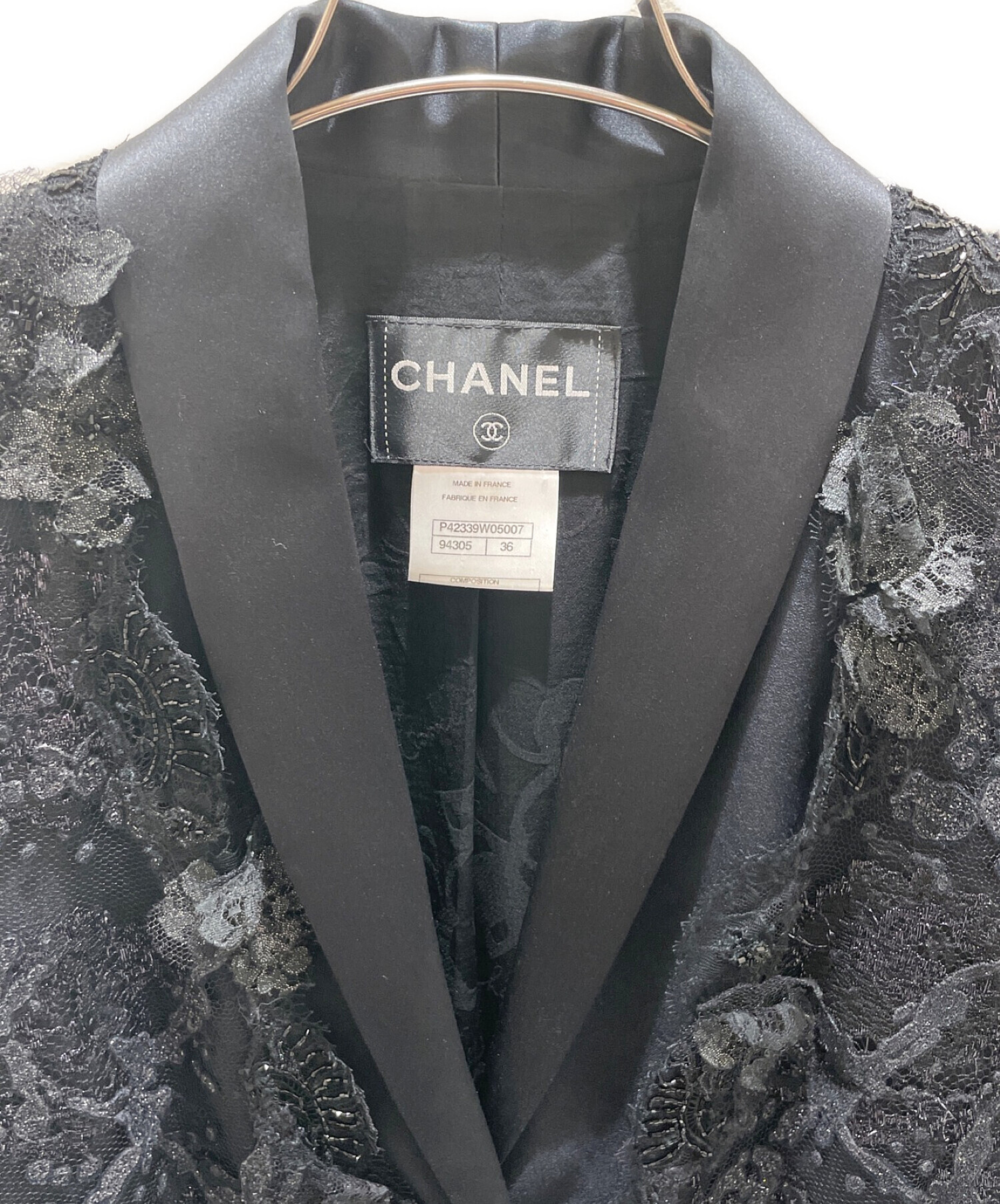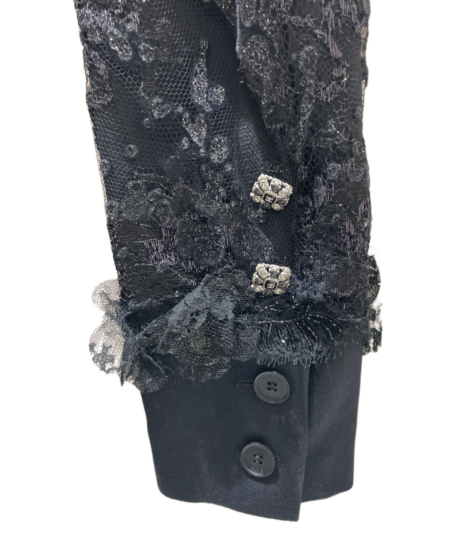 | スタッフコメント | 装飾されたレースが華やかな印象を与えるCHANELのレーステーラードジャケットでございます。素材は上質なシルクを使用しており、滑らかな肌触りを感じることができます。また、デザイン性が高いためお洋服合わせしやすいです。 |