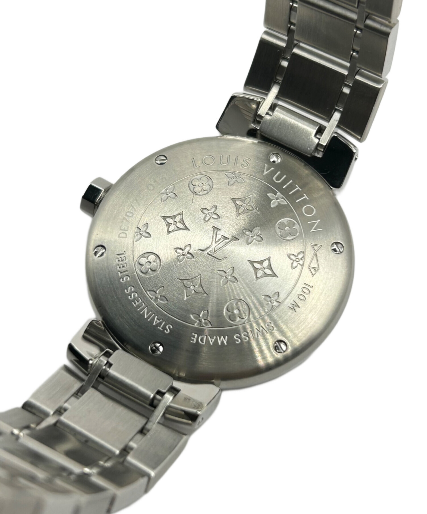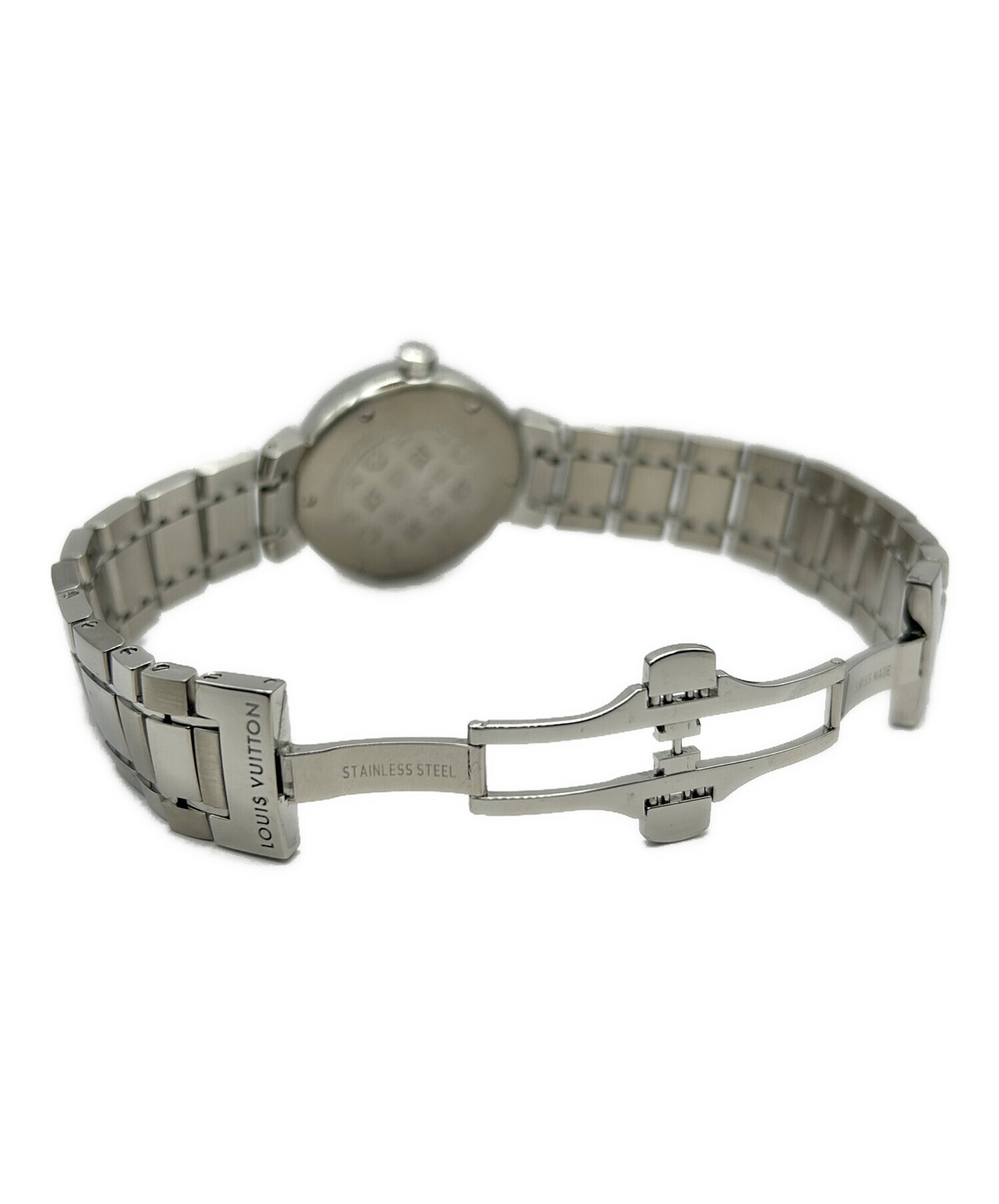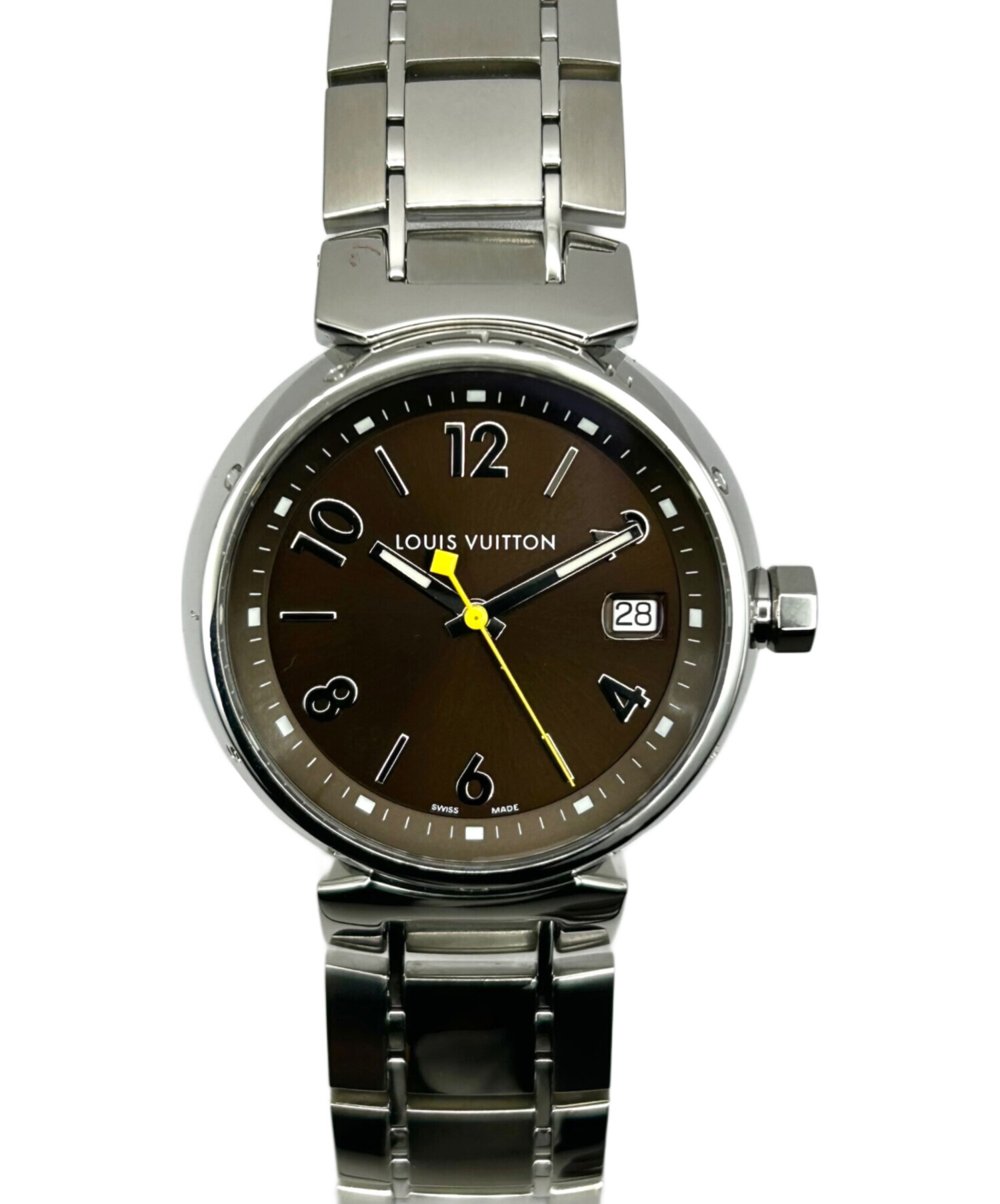 | スタッフコメント | Louis Vuitton、タンブールでございます。ブラウンの文字盤がイエローカラーの秒針を引き立て、シンプルかつクラシックで落ち着いた印象を与えます。普段使いしやすいクォーツ式、日常シーンにも馴染むカラーリングが魅力的な1点です。 |