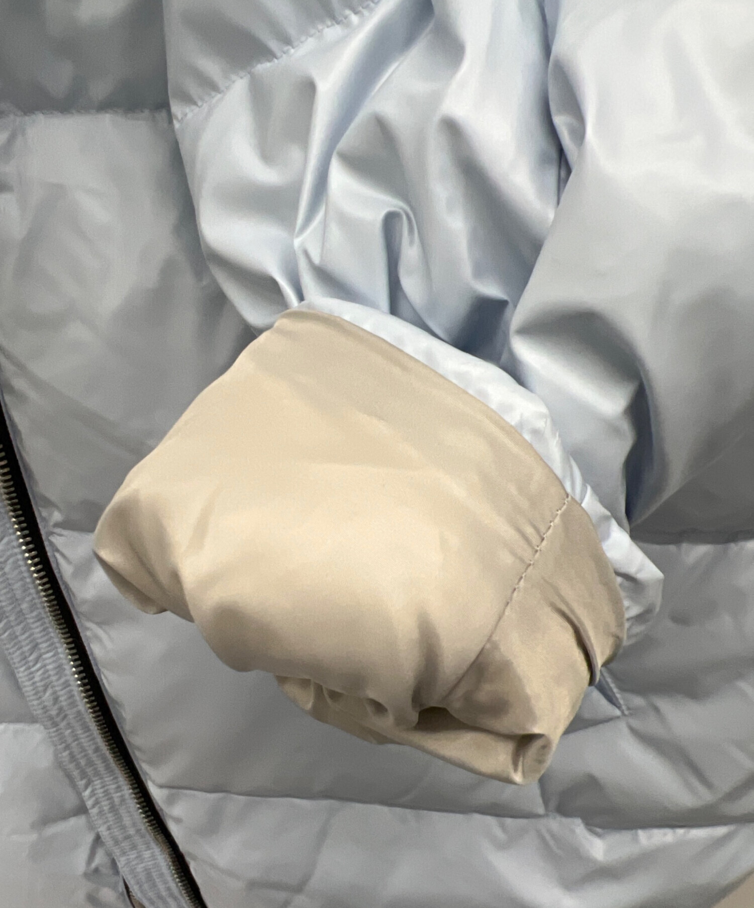 | 素材 | ホワイトグースダウン 90% ホワイトグースフェザー 10% 表地:ナイロン 100% 裏地:ポリエステル 100% |