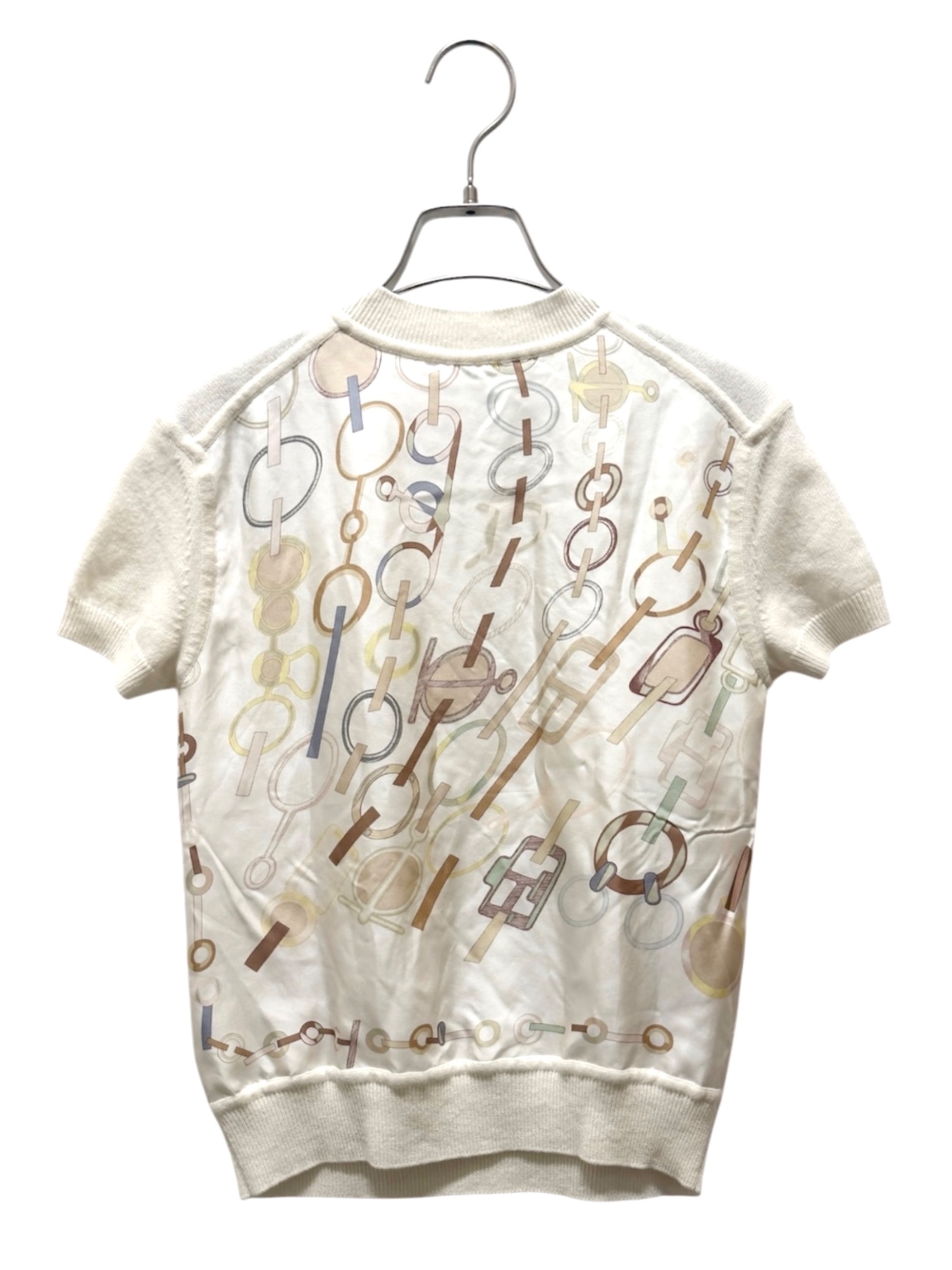 | スタッフコメント | シルクスカーフ「カレ」のプリントとニット素材を融合させたエルメスのツイルレーヌでございます。素材には上質なカシミヤとシルクを使用しており、高級感を演出します。デニムやスラックスで合わせるなど、様々なコーディネートをお楽しみいただけます。 |
