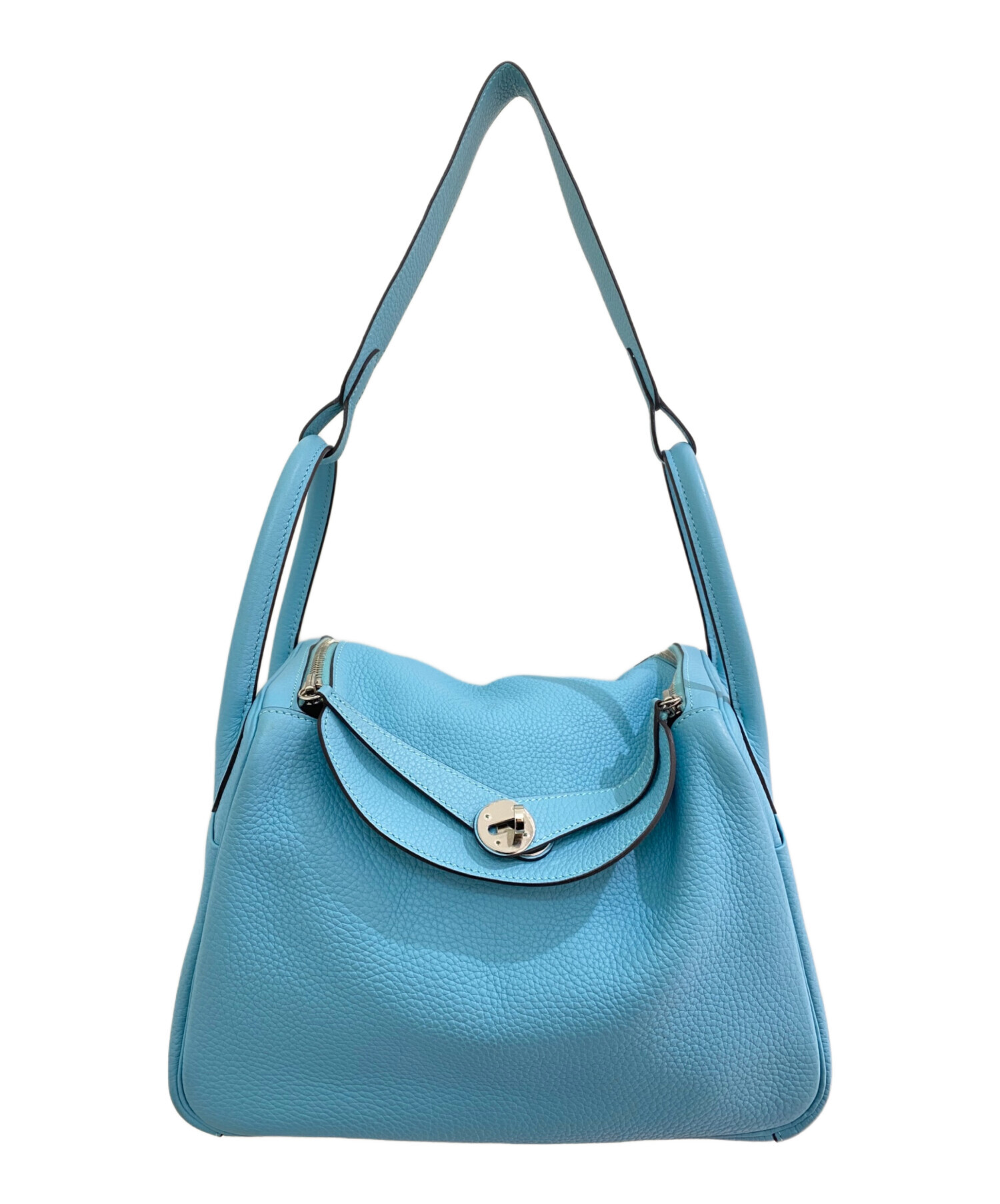 スタッフコメント 爽やかなブルーアトールカラーが爽やかなHERMESのリンディ30でございます。定番シルエットで持つだけでコーディネートを格上げしてくれるアイテムです。ショルダーだけでなく、ハンドバックとしてもお使いいただけます。また、収納力に優れた万能アイテムです。