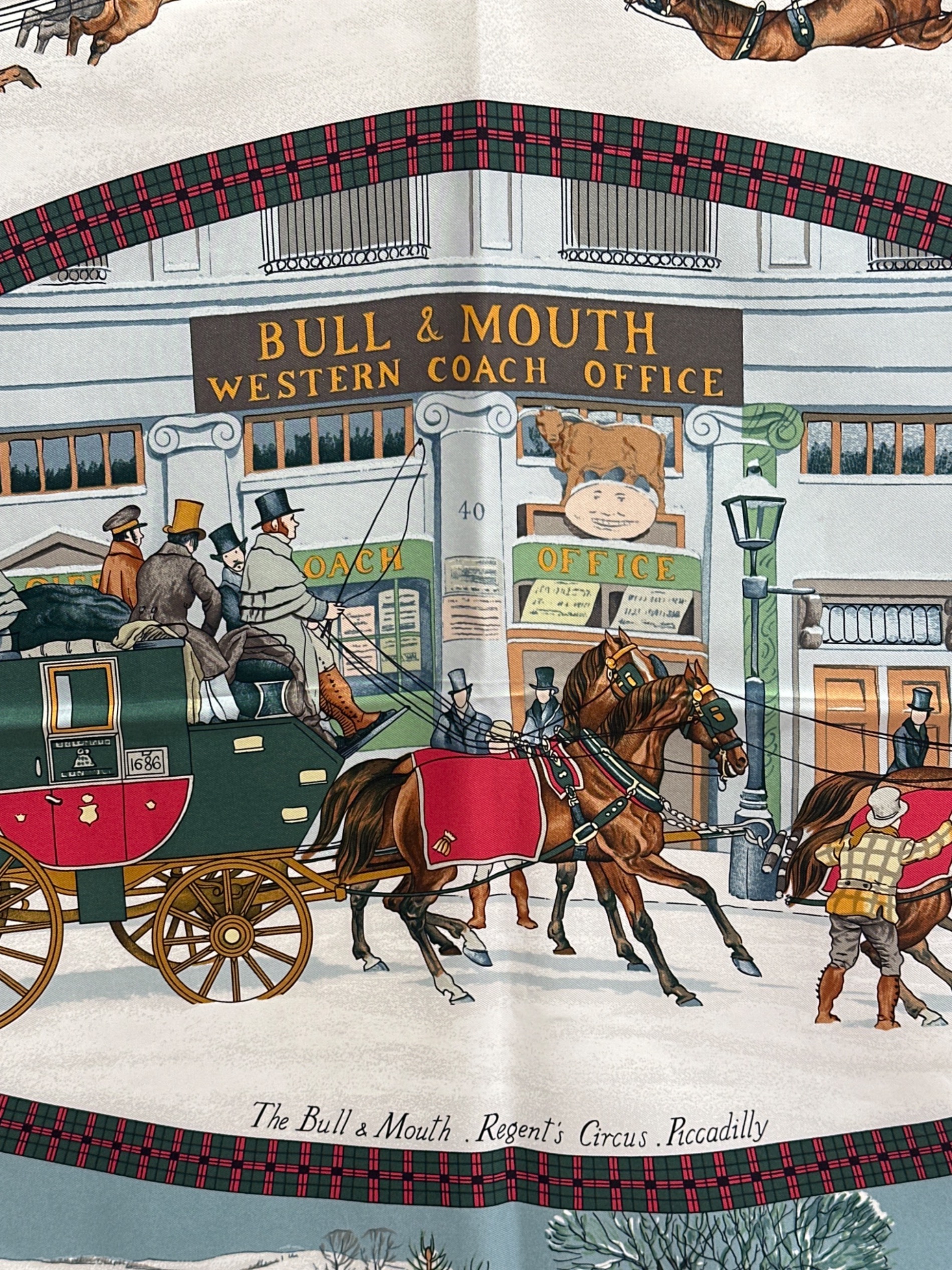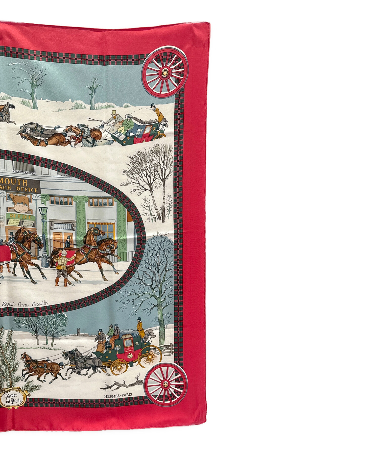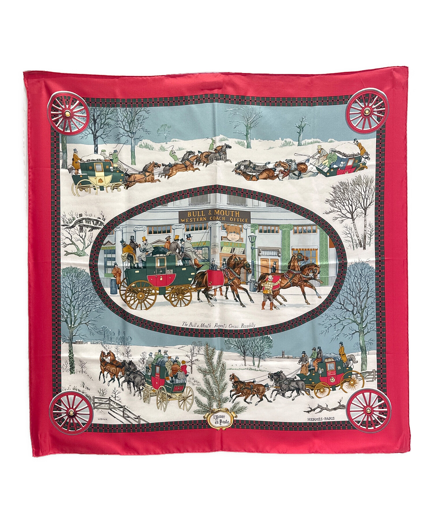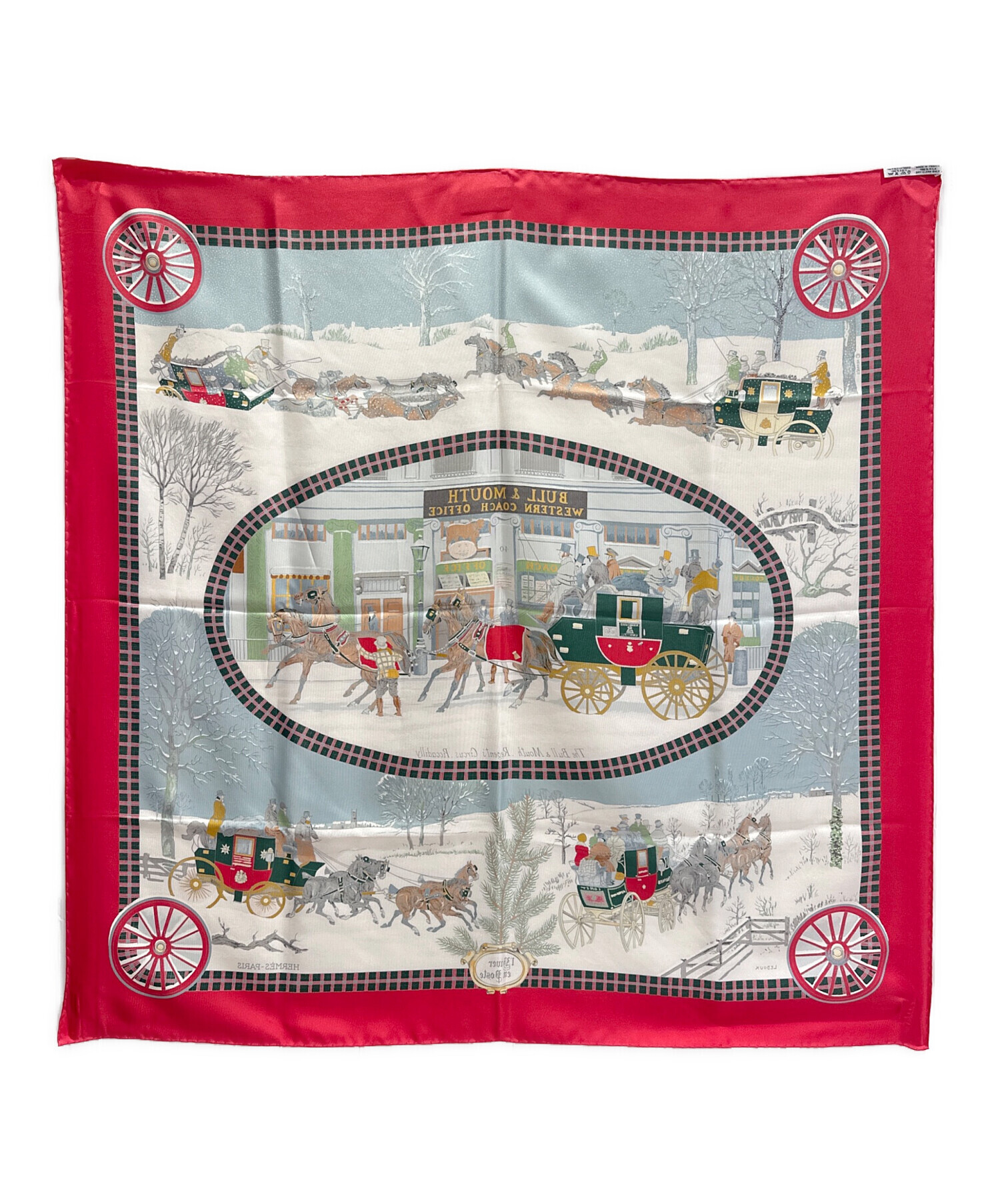 | アイテム名 | カレ90 BULL&MOUTH WESTERN COACH OFFICE 冬の郵便馬車 雪景色 /シルクスカーフ |