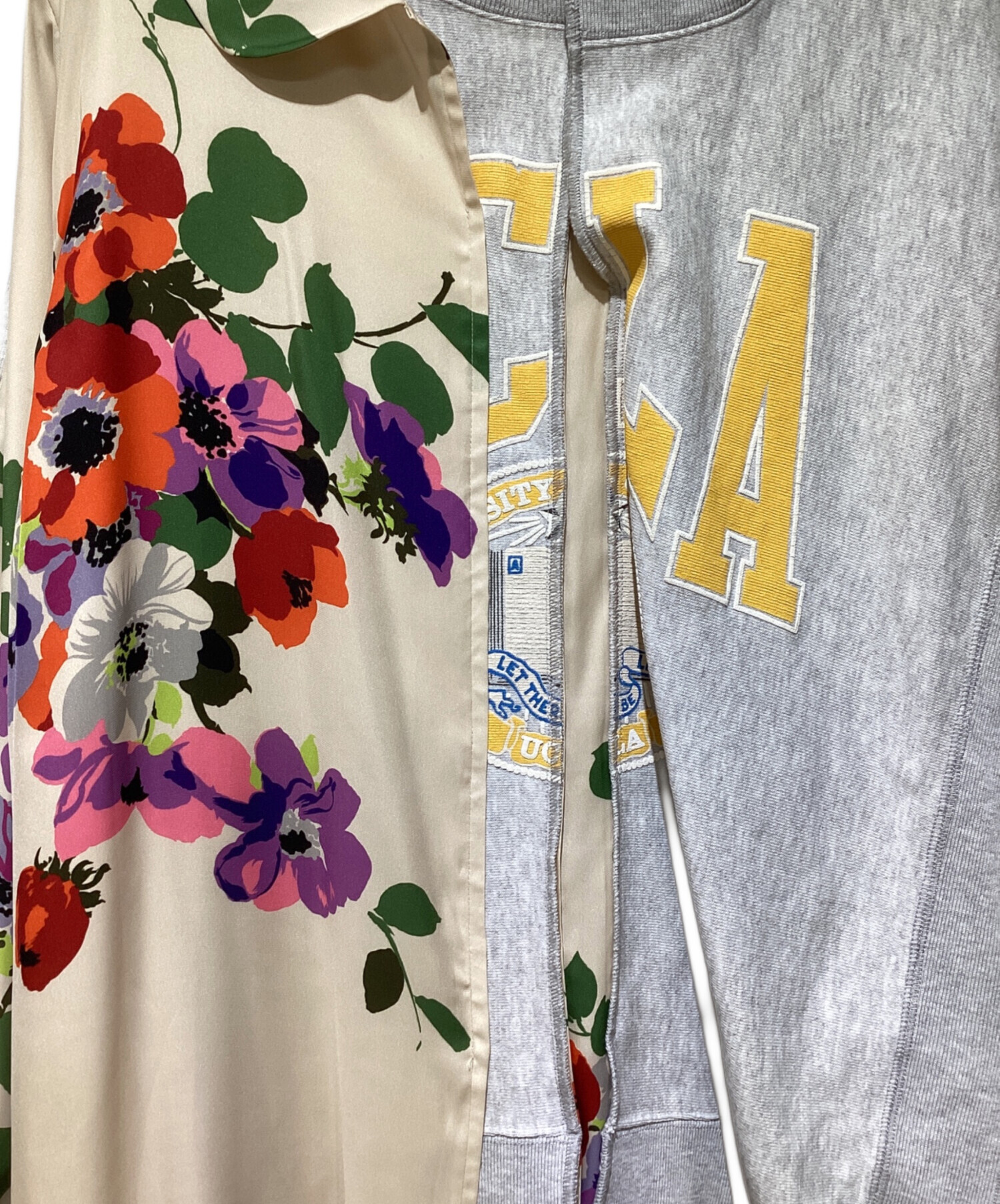 | スタッフコメント | ワンピースにスウェットをドッキングしたジュンヤワタナベらしい再構築デザインのワンピースでございます。色鮮やかなお花のプリントは存在感があり、動いたときに揺れるプリーツのドレープ感がエレガントな印象の一着です。 |