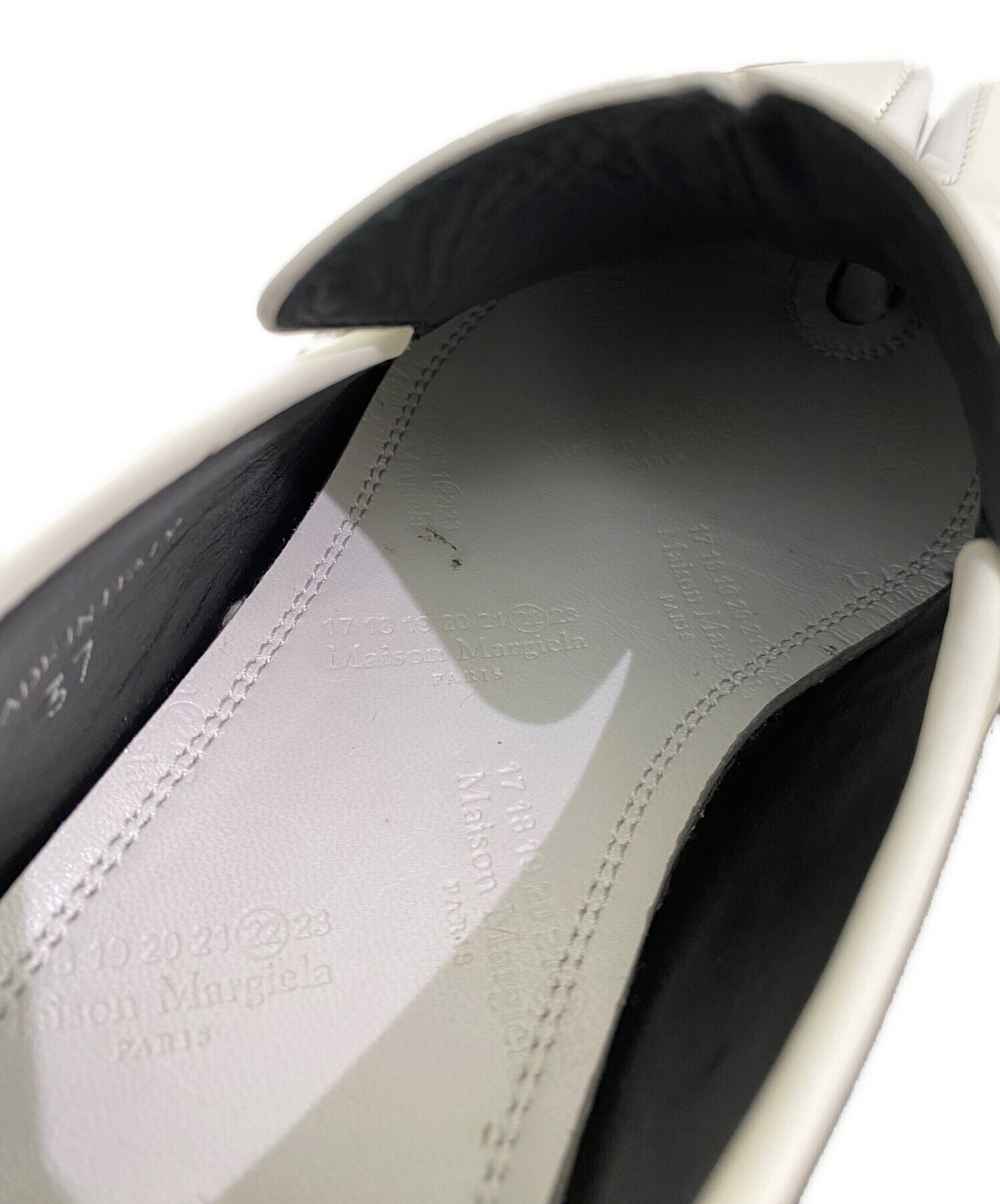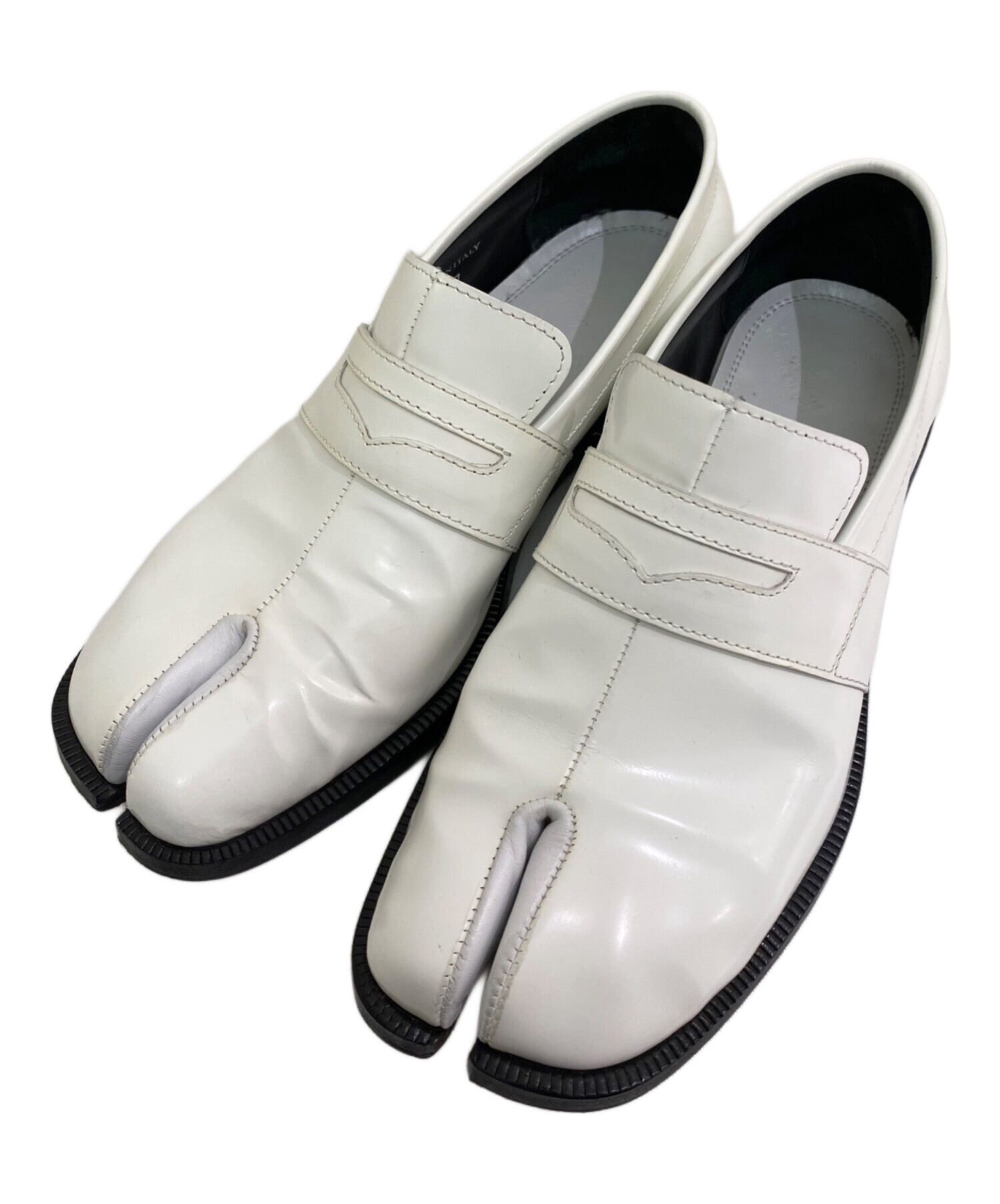 | スタッフコメント | Maison Margielaの定番人気アイテム、タビシリーズのローファーです。ホワイトで洗礼されたデザインは、足元に存在感を与えます。カジュアルな服装にもぴったりなアイテムです。 |