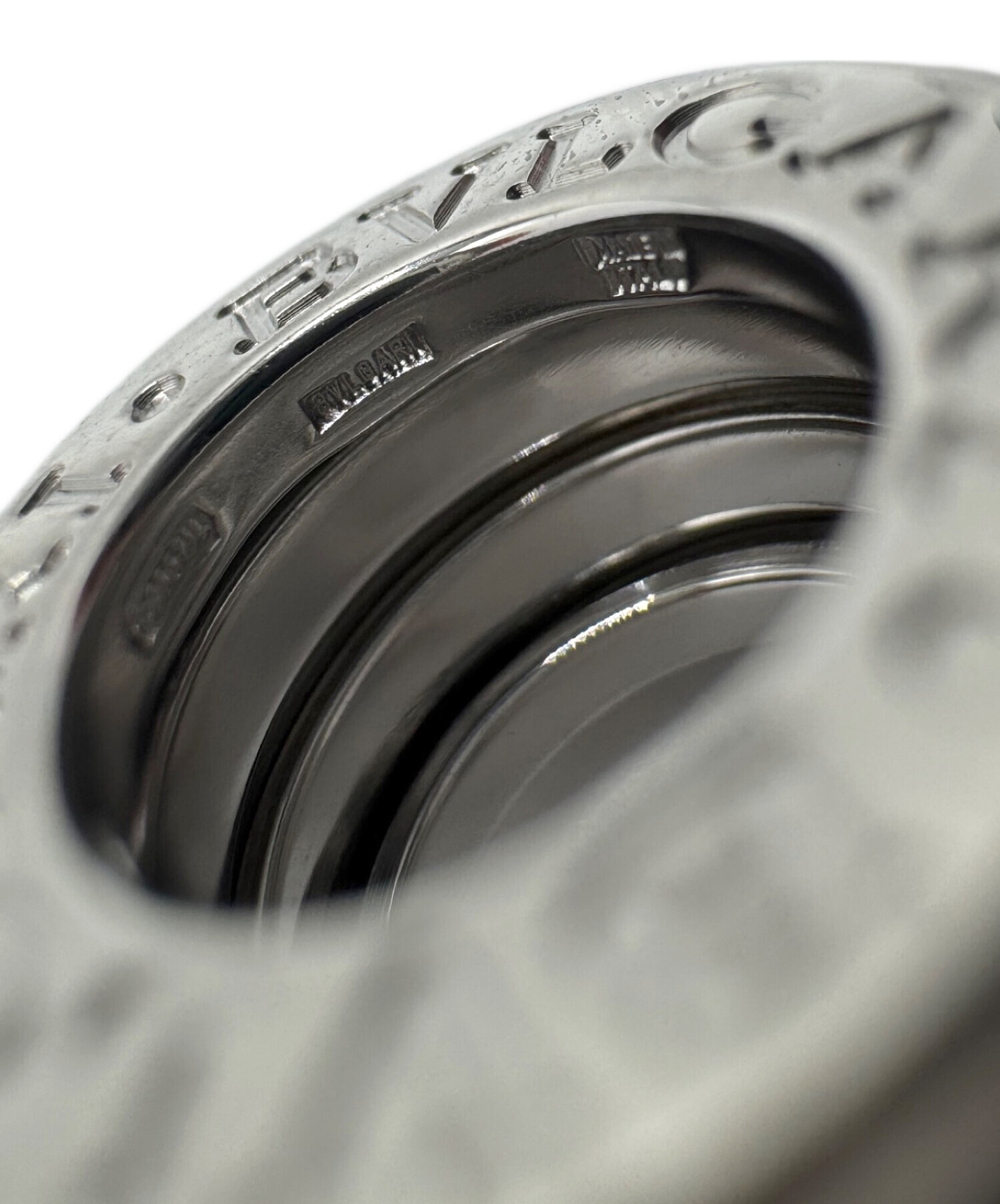 | スタッフコメント | コロッセオをモチーフとしたデザインが特徴的なブルガリのビー・ゼロワン リングでございます。素材は美しく輝くホワイトゴールドとセラミックを使用しており、上品な印象を与えます。身に着けて頂くことで普段のスタイルをワンランクアップさせるアイテムです。 |