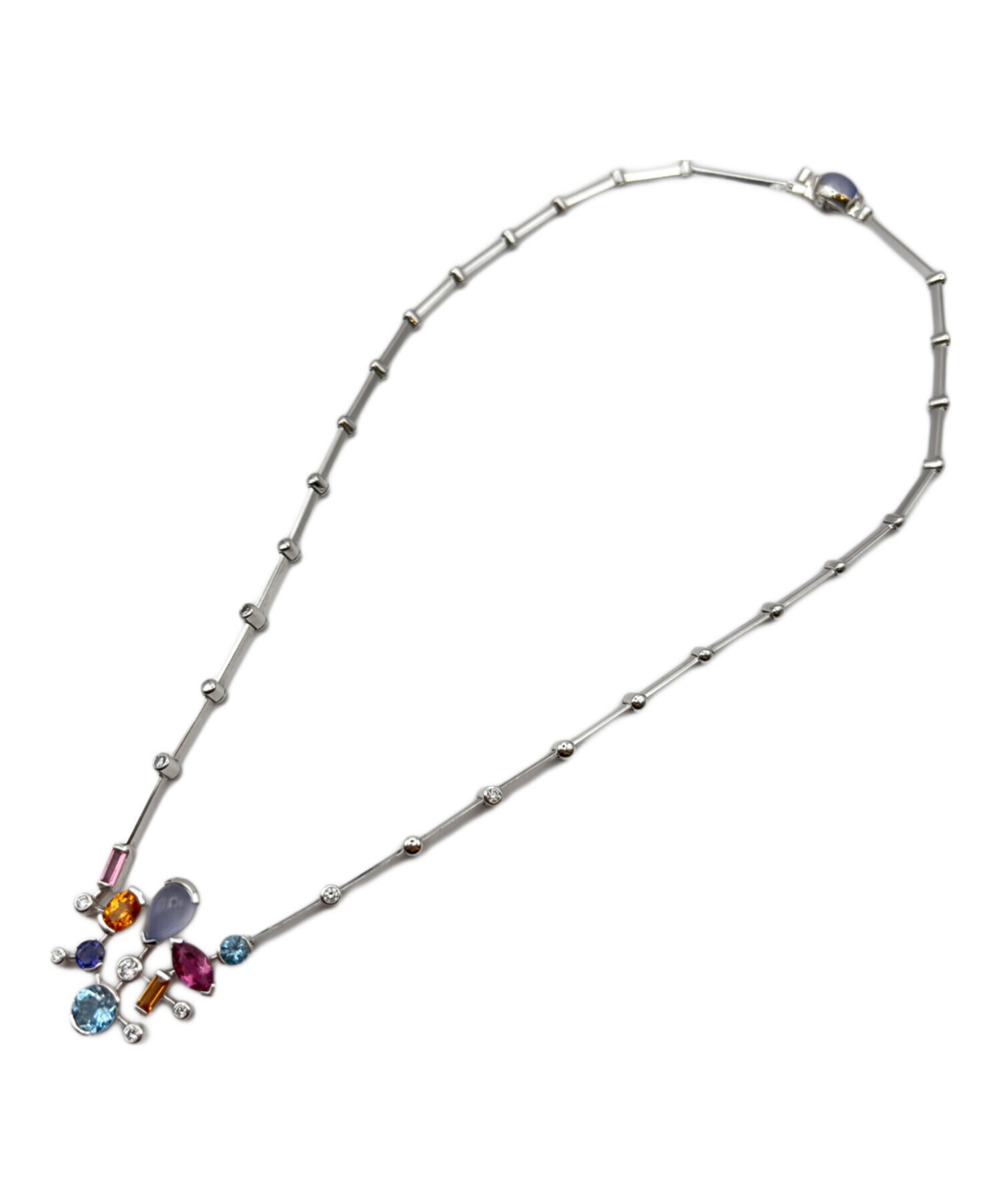 | 素材 | 本体:K18WG(ホワイトゴールド)/石:アクアマリン・ダイヤモンド・カルセドニー・マンダリンガーネット・ピンクトルマリン・コーディアライト(アイオライト) |