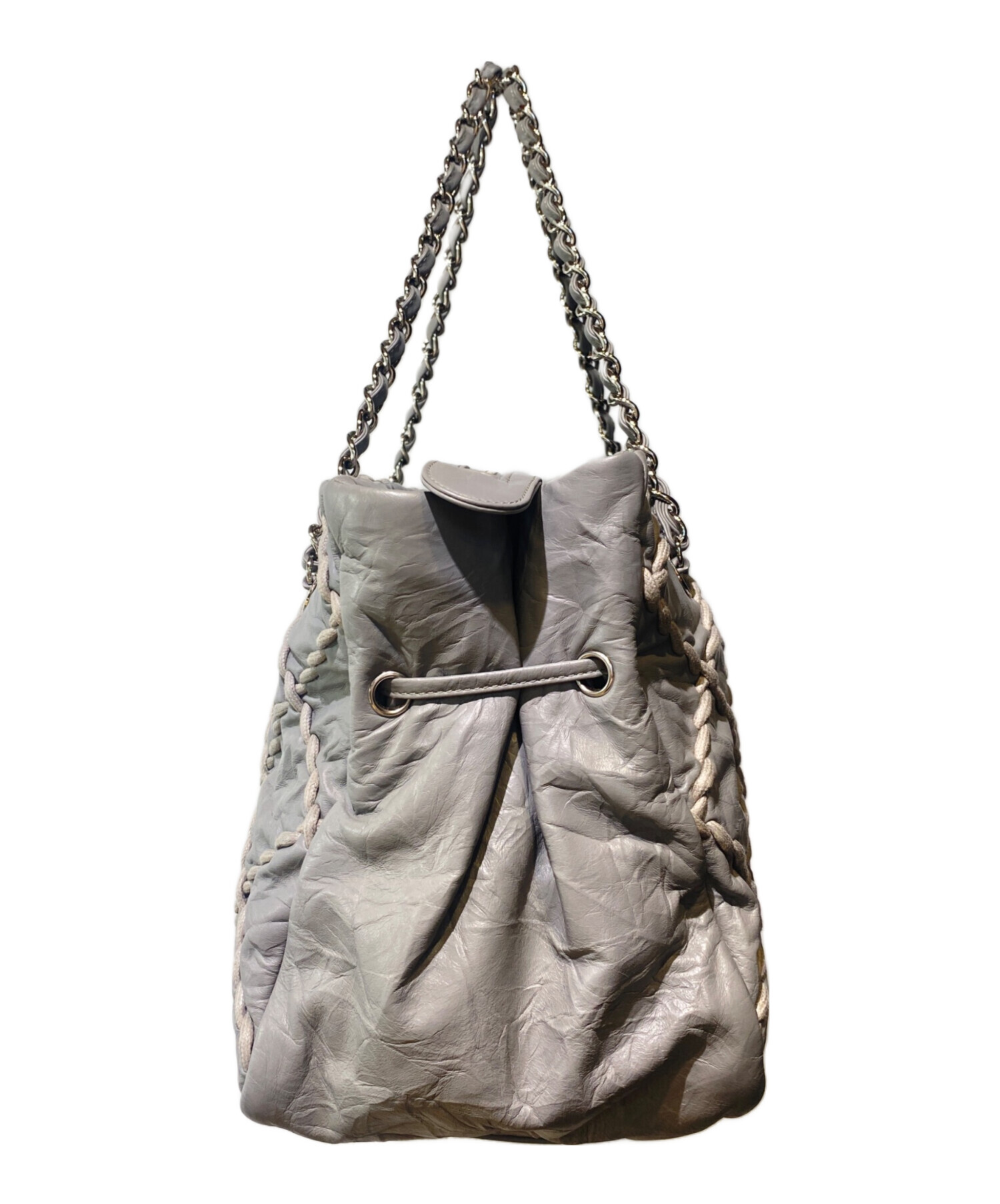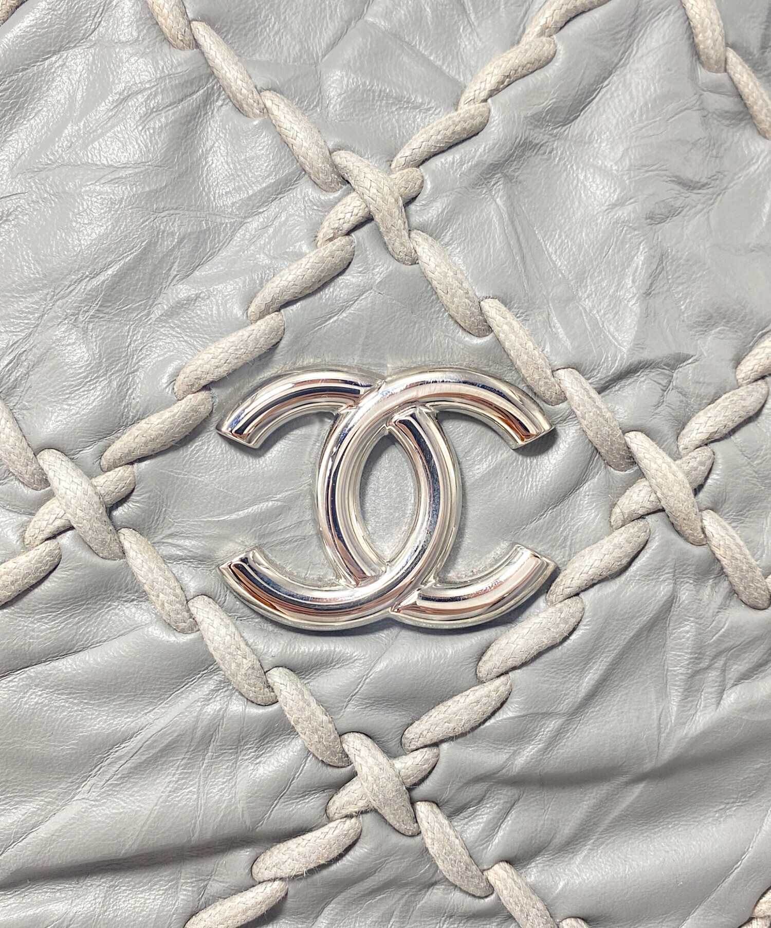 | スタッフコメント | 網目模様でフロントに大きくココマークがデザインされたウルトラステッチラムスキンショルダーバックです。グレー1色に仕立て上げられハンドル部分のシルバーと相性が良いアイテムとなっております。 |