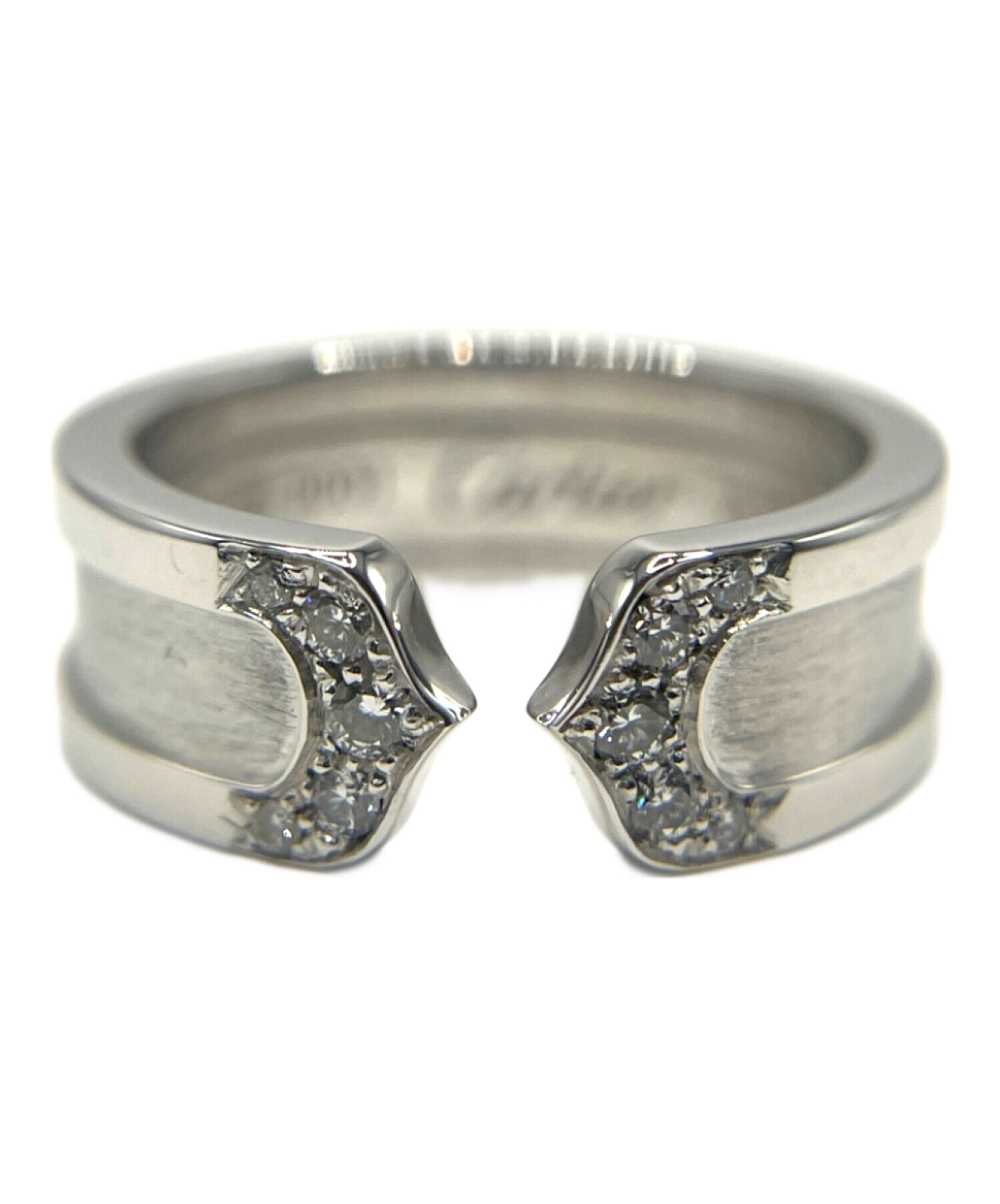 | スタッフコメント | トップの両サイドにダイヤモンドをセッティングしたC2リングです。ホワイトゴールドを使用した高級感のある輝きと中央部分のマット仕上げのコントラストが特徴です。ドレスやきれいめな服装と相性が良く、手元に存在感を与えてくれるアイテムです。 |