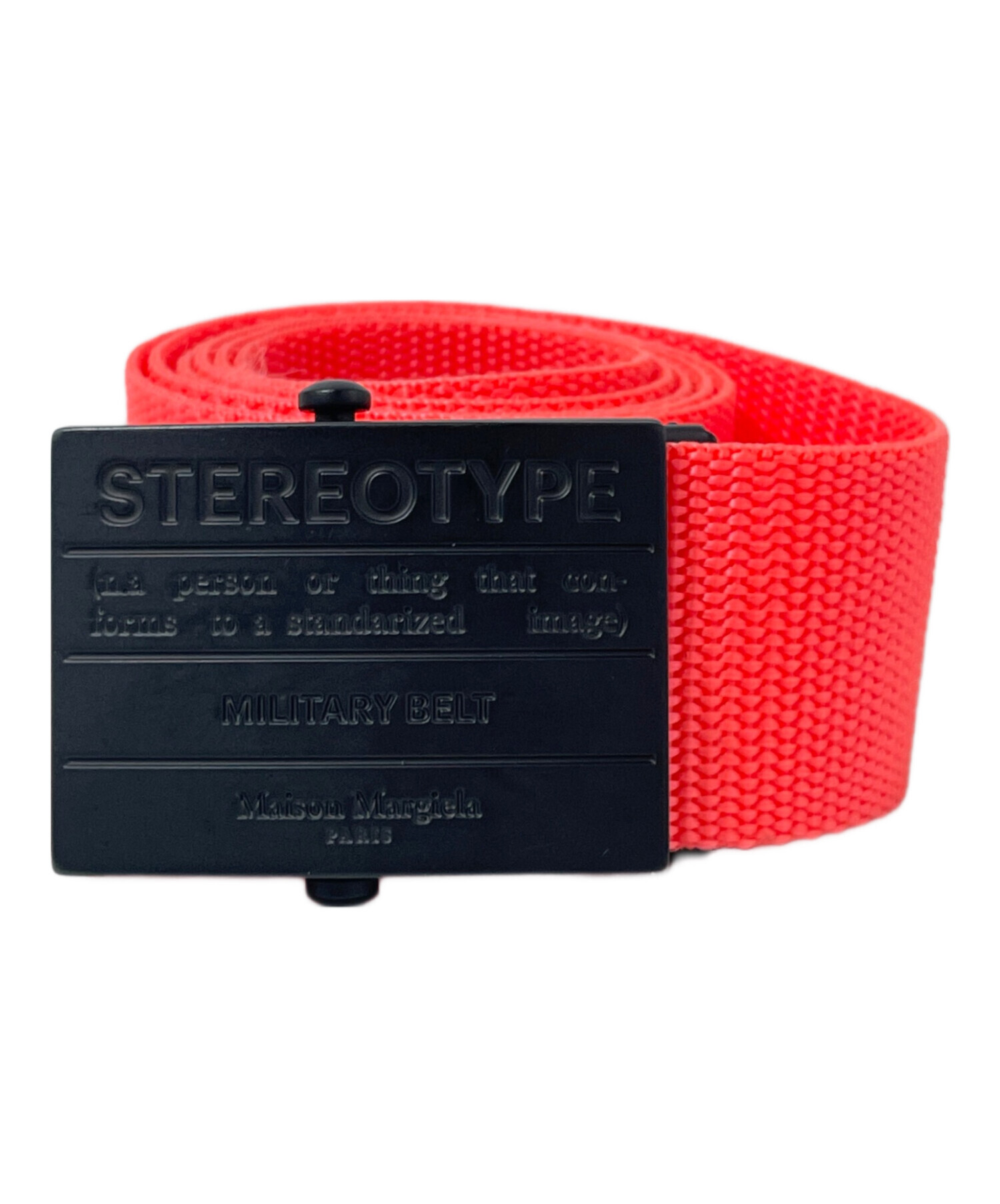 | スタッフコメント | メゾンマルジェラのガチャベルトです。ナイロン素材でカラーも発色性の良いオレンジなのでカジュアルコーデやフォーマルなコーデのアクセントにぴったりです。 |