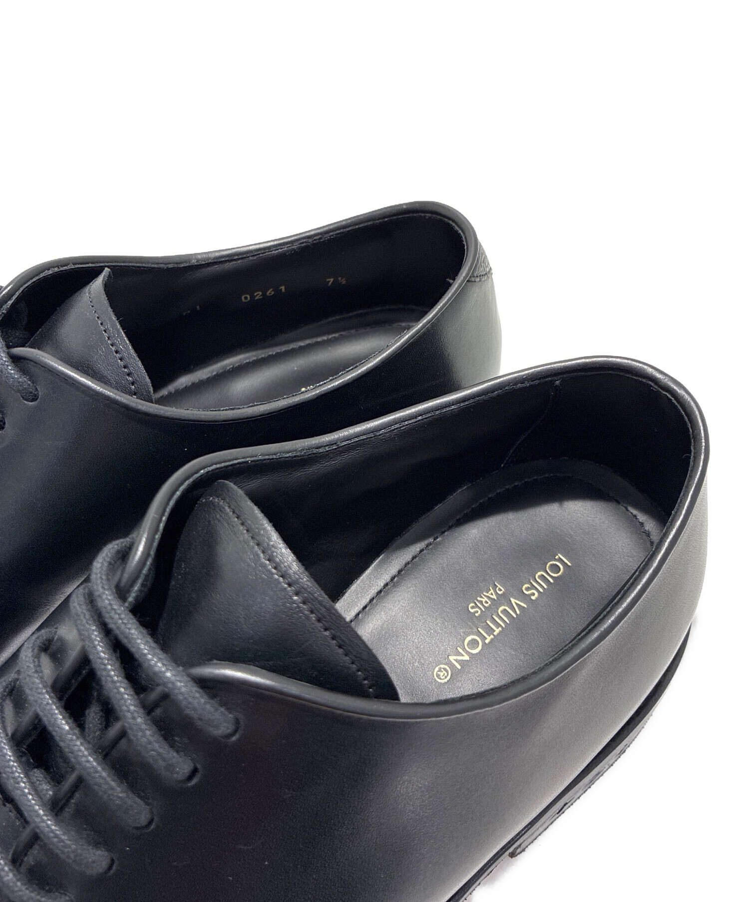 | スタッフコメント | LOUIS VUITTONのプレーントゥレザーシューズでございます。上質なカーフレザーと精緻なクラフツマンシップが光る一足。シンプルで洗練されたデザインが、ビジネスからフォーマルまで幅広いシーンに品格を添えます。 |