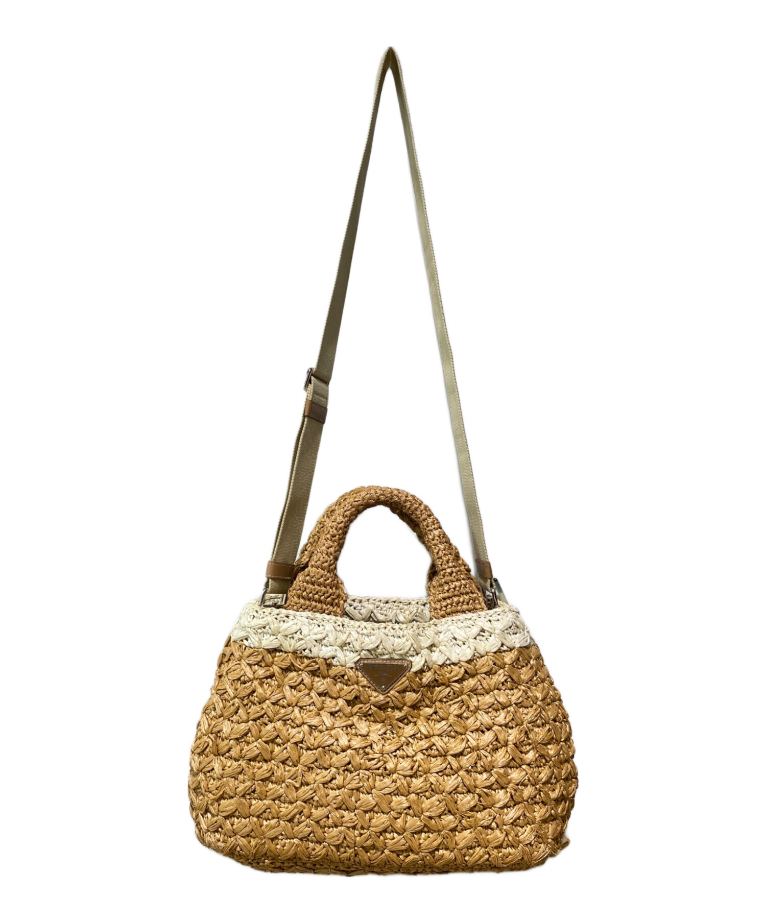 | スタッフコメント | PRADAのアイテムとして認知度の高いカナパの2WAYハンドバッグでございます。夏らしさを感じるストロー生地のデザインが魅力的で、フロントにはアイコニックなトライアングルロゴプレートがあしらわれています。内部に4つのポケットを備え、収納力に優れており、附属のストラップで、ハンドとショルダーの2WAYでご使用いただけます。 |
