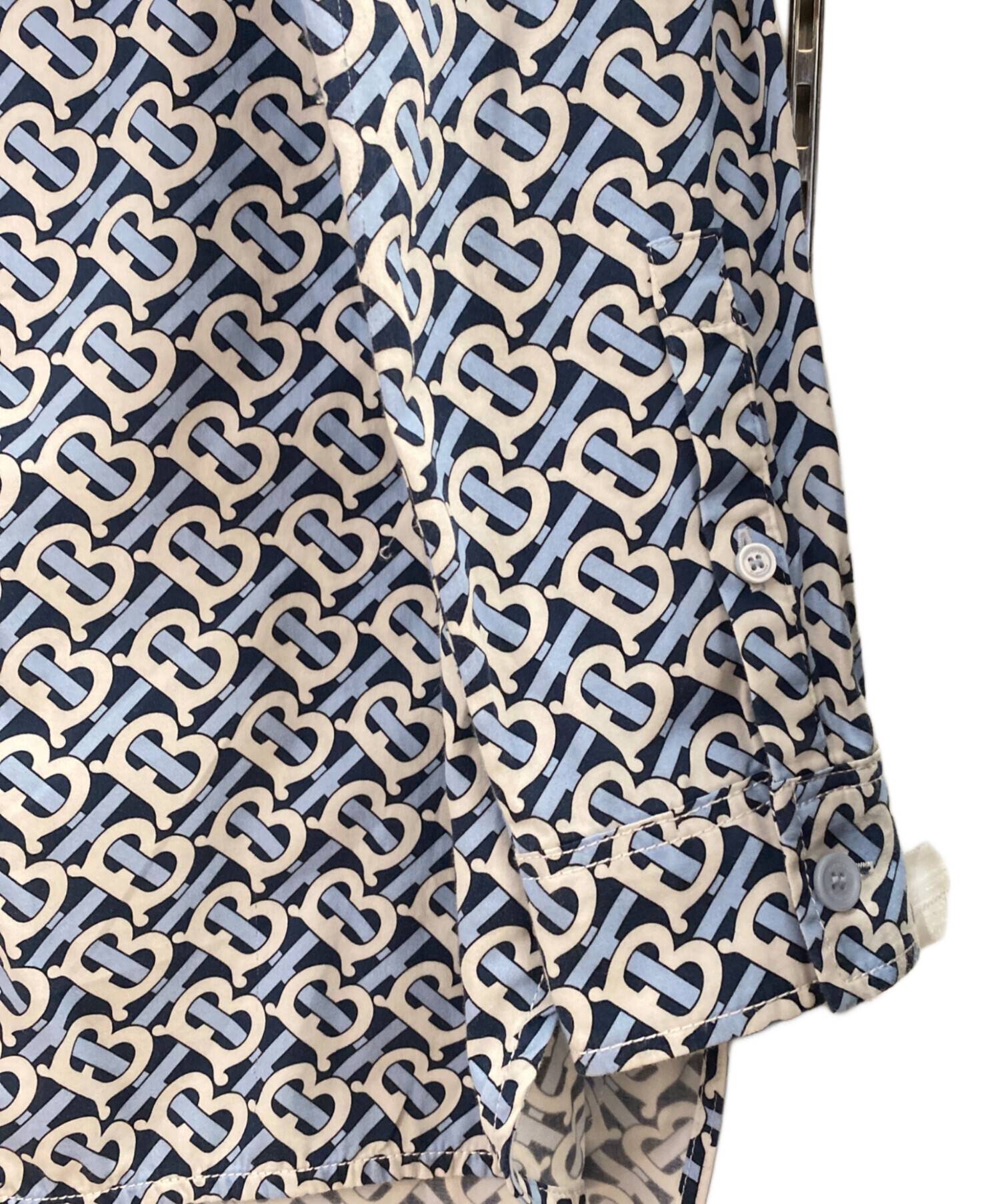 | スタッフコメント | TBモノグラムの柄があしらわれた長袖シャツでございます。爽やかなライトブルーの色味がコーディネートのアクセントになります。フロントは比翼仕立てになっており、すっきりとしたシルエットが特徴です。 |