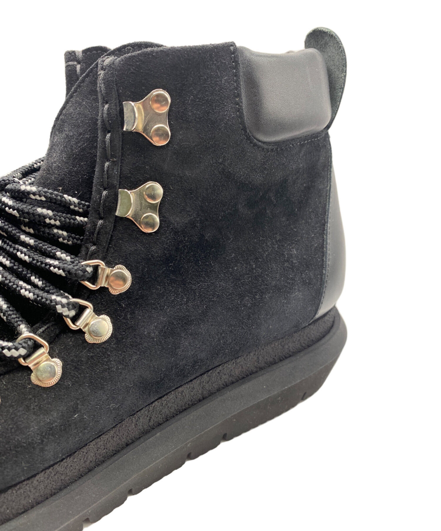 スタッフコメント 上質なスエードアッパーと厚めのトレッキングソール仕様が特徴のレースアップブーツでございます。ブラックカラーを基調に、細部のレースアップやボリューム感のあるソールがスタイルに映えて、秋冬シーズンのスタイリングに最適な一足です。