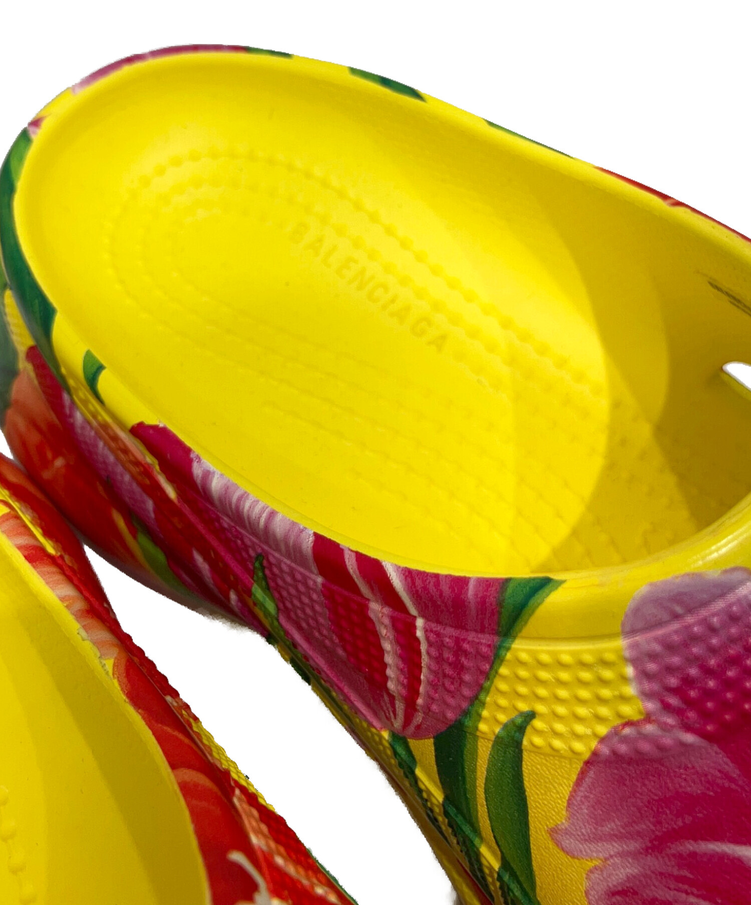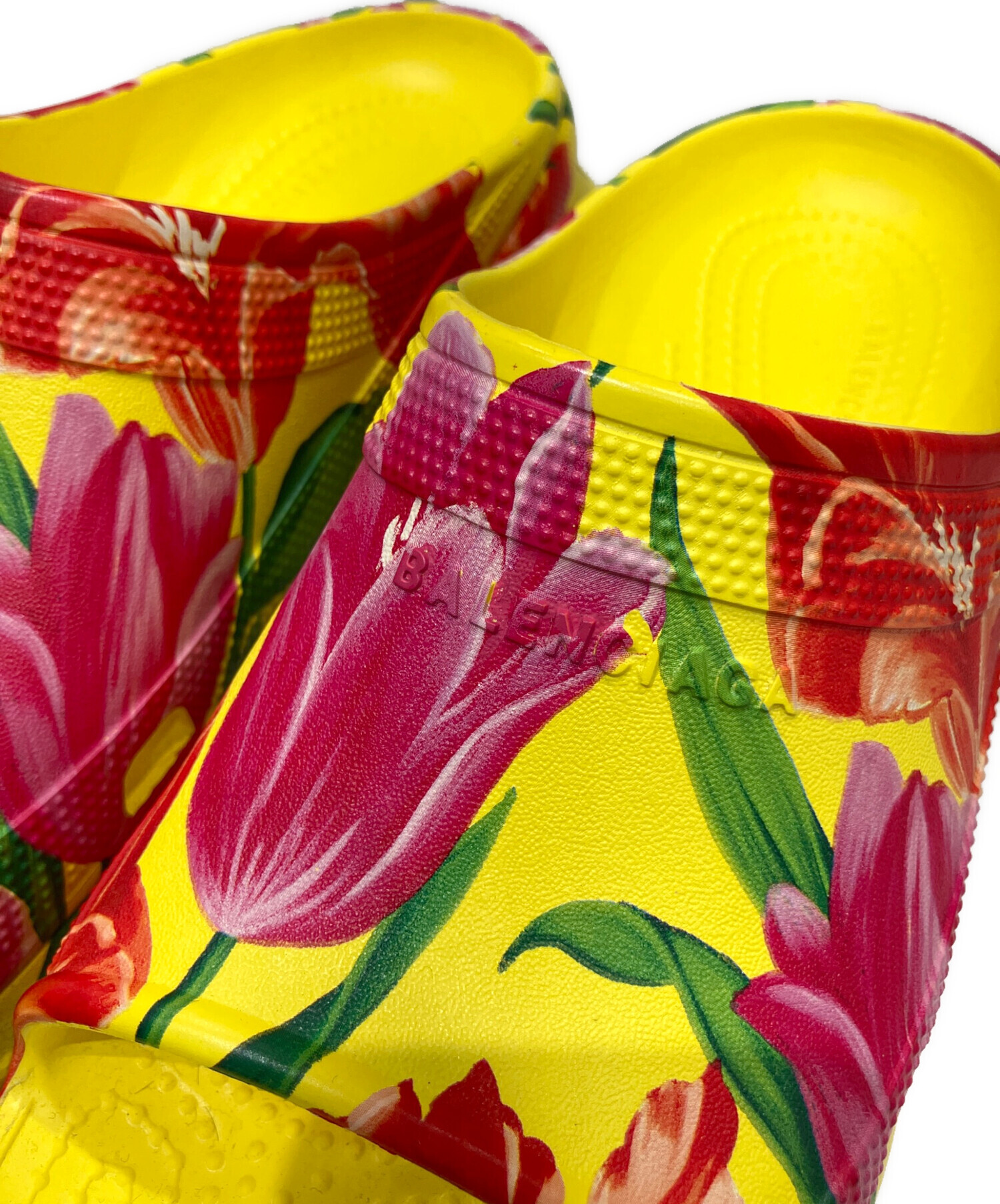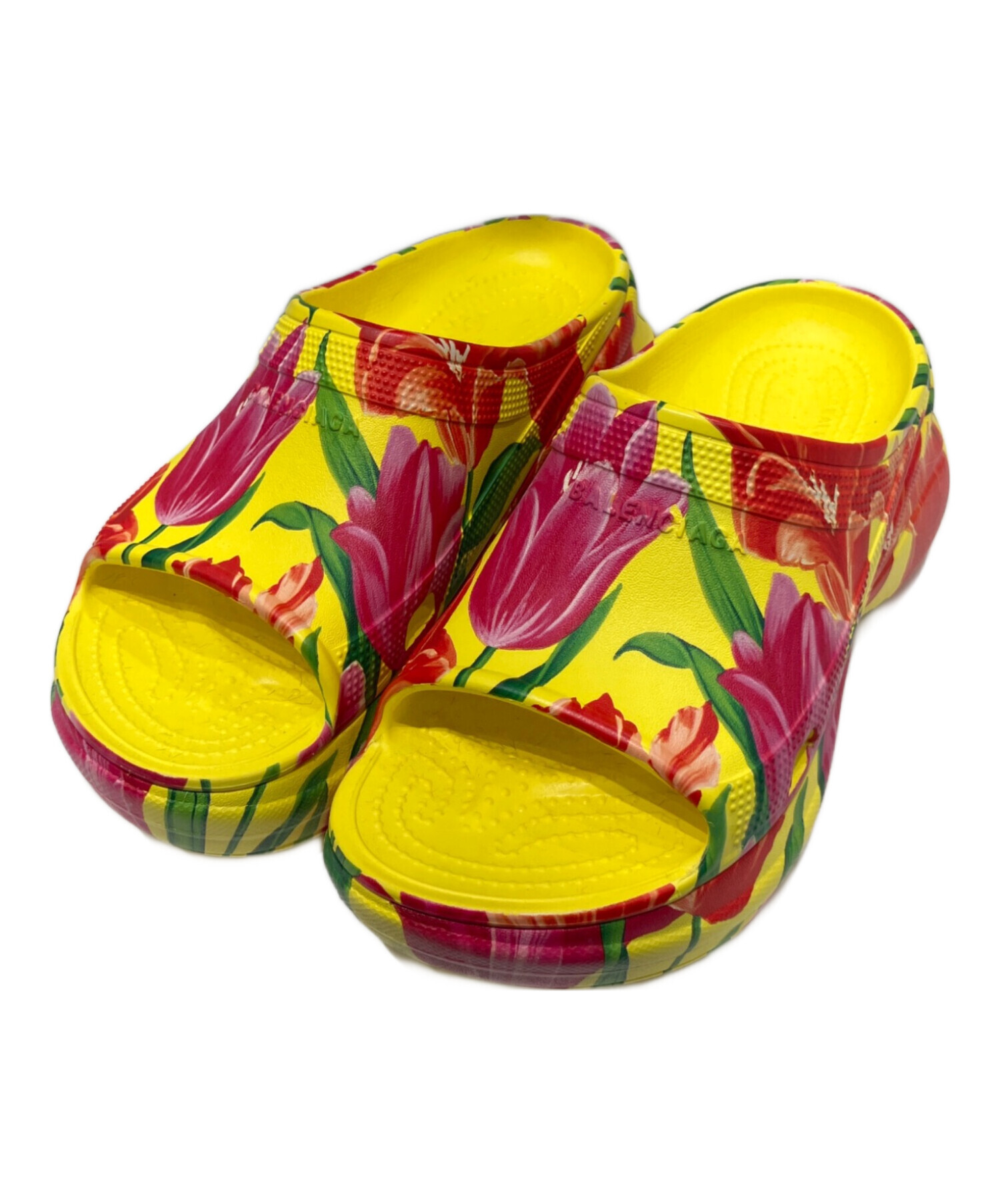 | スタッフコメント | 鮮やかなイエローにチューリップのフラワープリントが施されたBALENCIAGAのサンダルでございます。インパクトのあるデザインでコーディネートにアクセントを加えてくれる逸品です。 |