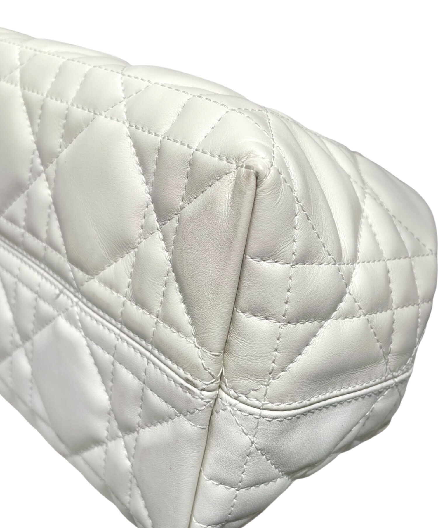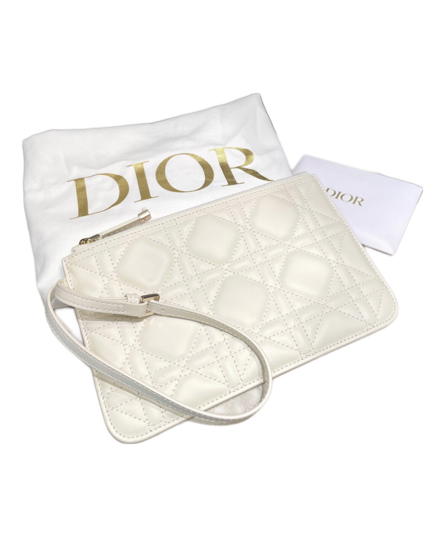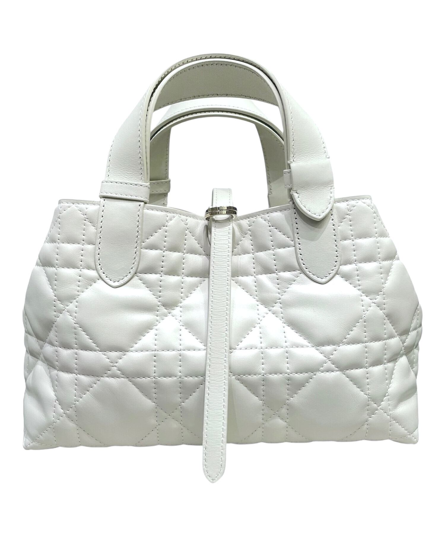 | スタッフコメント | 上品なホワイトカラーに、特徴的なカナージュステッチが特徴のトゥジュールでございます。コンパクトながらも収納力が十分にあり、長財布やスマートフォン、化粧品など必需品を収納できます。ゴールドの「D.I.O.R」チャームがアクセントになり、カジュアルからフォーマルまで幅広いシーンでお使いいただけます。 |