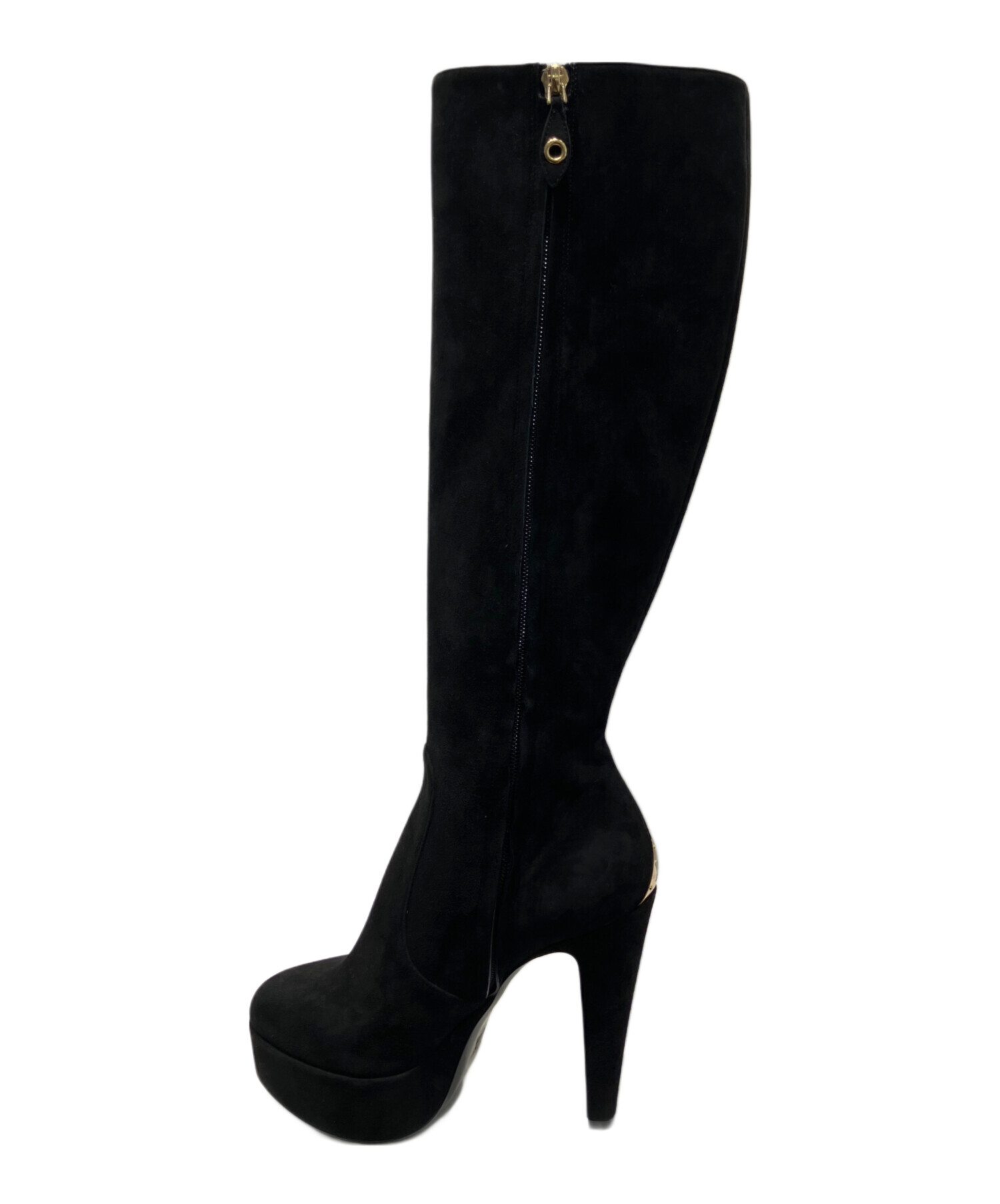 | スタッフコメント | 上質なスエード素材を使用したブラックカラーのロングブーツですございます。滑らかな質感とエレガントなシルエットが足元を美しく演出し、上品な印象を与えます。シンプルながら洗練されたデザインで、スカートやワンピース、デニムとの相性も抜群です。日常から特別なシーンまで幅広く活躍する一足です。 |