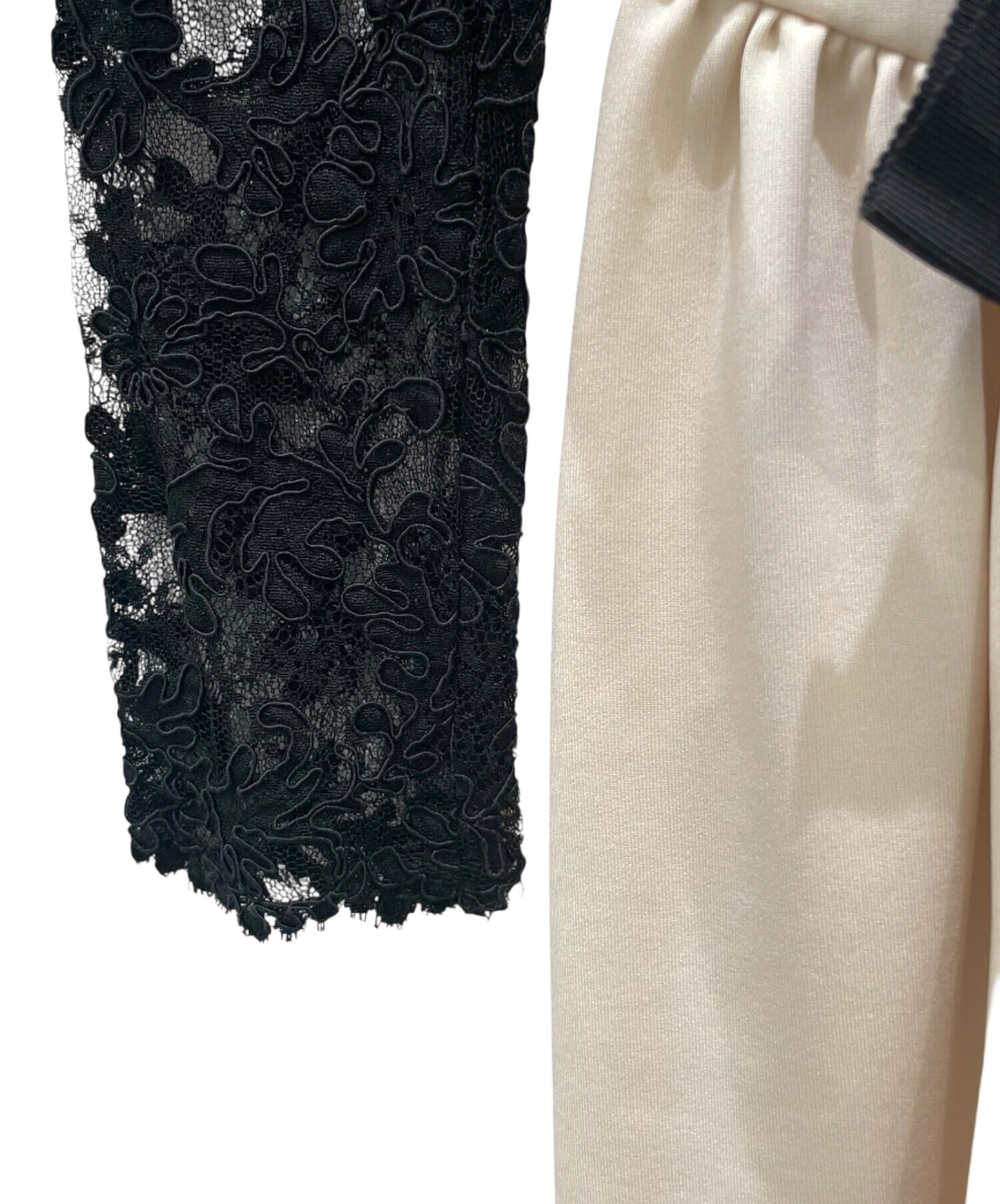 | スタッフコメント | 繊細なレースと上質な生地を巧みに切替えたデザインが特徴で、エレガントかつフェミニンな印象を与えます。ウエストラインを美しく見せるシルエットで、軽やかな着心地と華やかな存在感を両立。デイリーからパーティーシーンまで幅広くお使いいただける一着でございます。 |