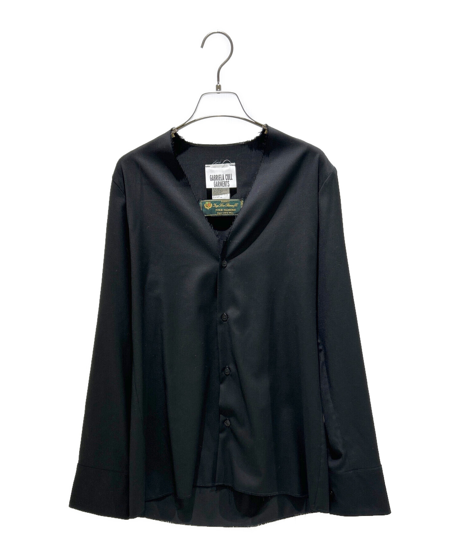 | スタッフコメント | 落ち着いたブラックカラーと美しいシルエット、切りっぱなしのような襟元のデザインが特徴のGabriela Coll GarmentsのVネックノーカラーシャツでございます。カジュアルさとフォールさを持つデザインで、ビジネスからカジュアルまで幅広く活躍いたします。 |