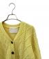 | スタッフコメント | 柔らかなカシミヤを使用したMYLANのケーブルニットカーディガンでございます。温かみのあるイエローカラーが顔周りを明るく演出し、スタイリングに華やかさを添えます。伝統的なケーブル編みとVネックデザインで、カジュアルにもきれいめにも合わせやすく、ボタンを閉めてトップスとして、開けて羽織としても活躍する一着です。 |