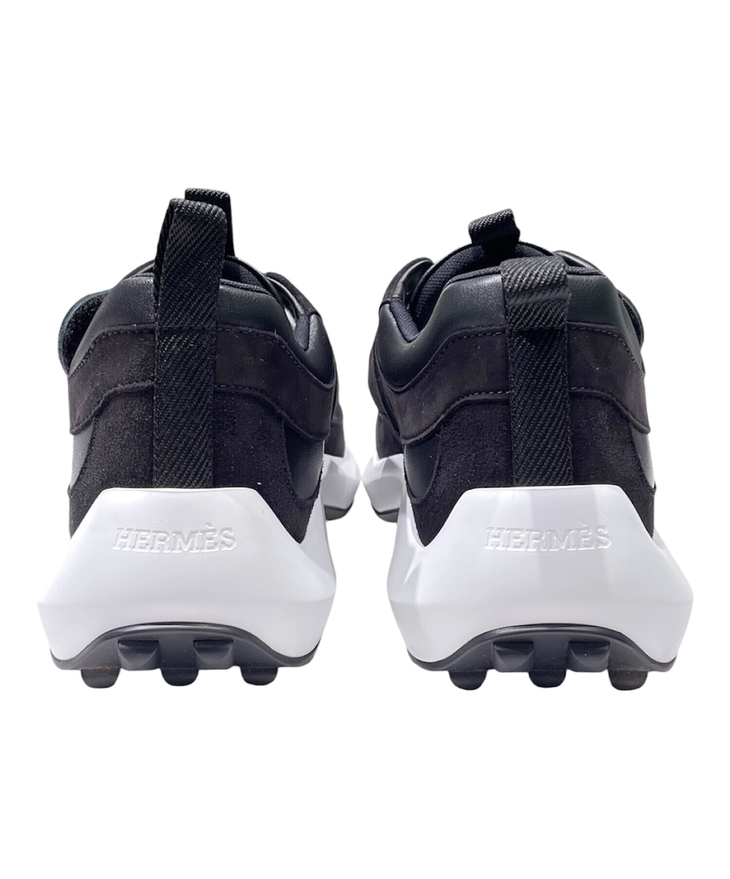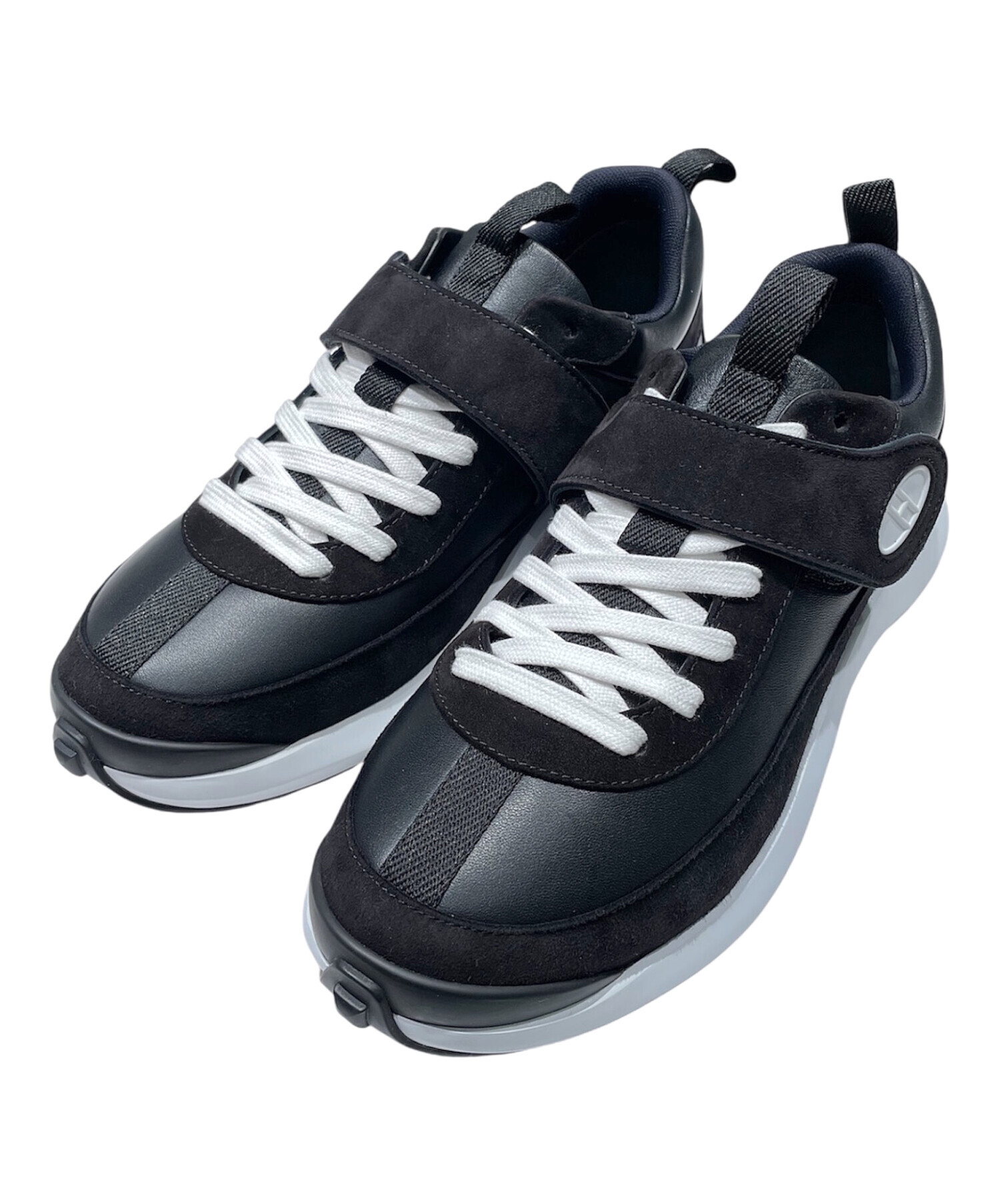| スタッフコメント | エルメスらしい洗練されたデザインが魅力の「ループ」スニーカー。ブラックでまとめられたシックな佇まいに、ホワイトソールが程よいコントラストを添えています。レザーとファブリックを組み合わせたアッパーは、上品さとスポーティさを兼ね備え、カジュアルながらも品のある印象に。クッション性のあるソールで履き心地も良く、デイリー使いからきれいめスタイルの外しとしても活躍する |