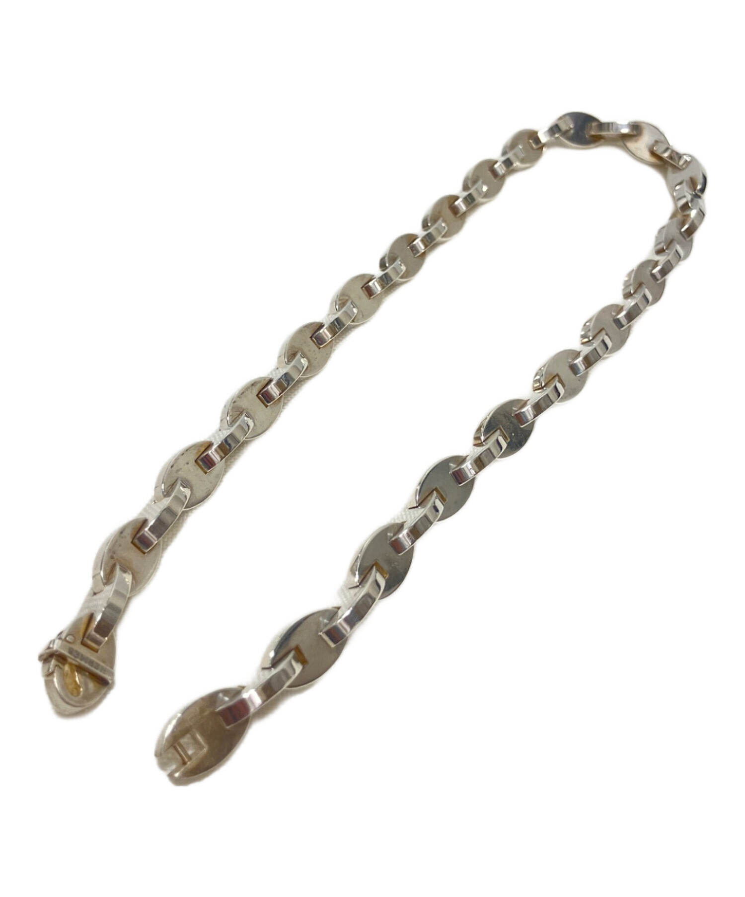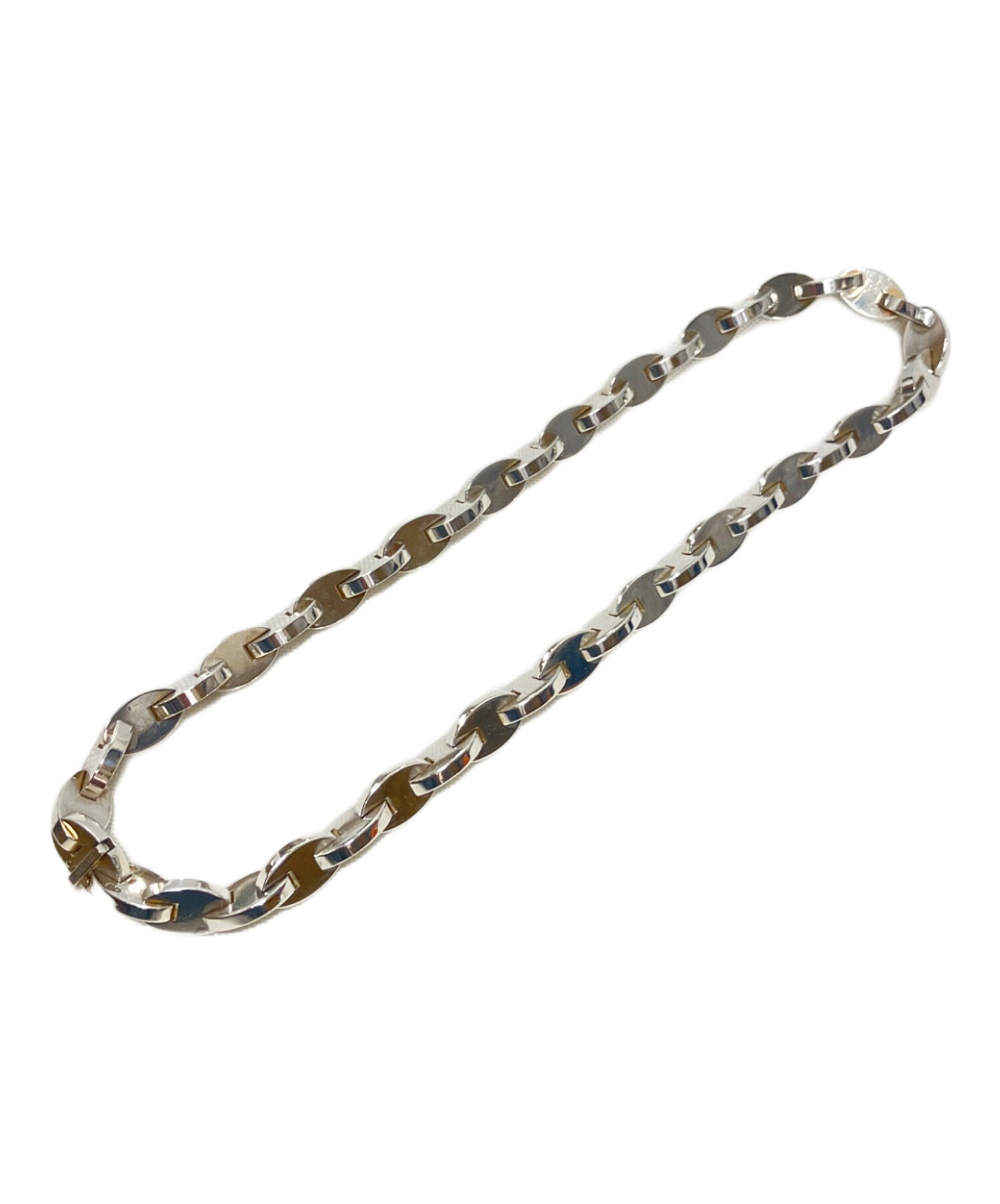 | スタッフコメント | 重厚感のある楕円型のチャームが連なったビンテージのチェーンネックレスです。SILVER925素材で重量感があり首元にラグジュアリーな存在感を与えます。アーバンなコディネートからヴィンテージスタイルまで幅広くマッチするアイテムです。 |