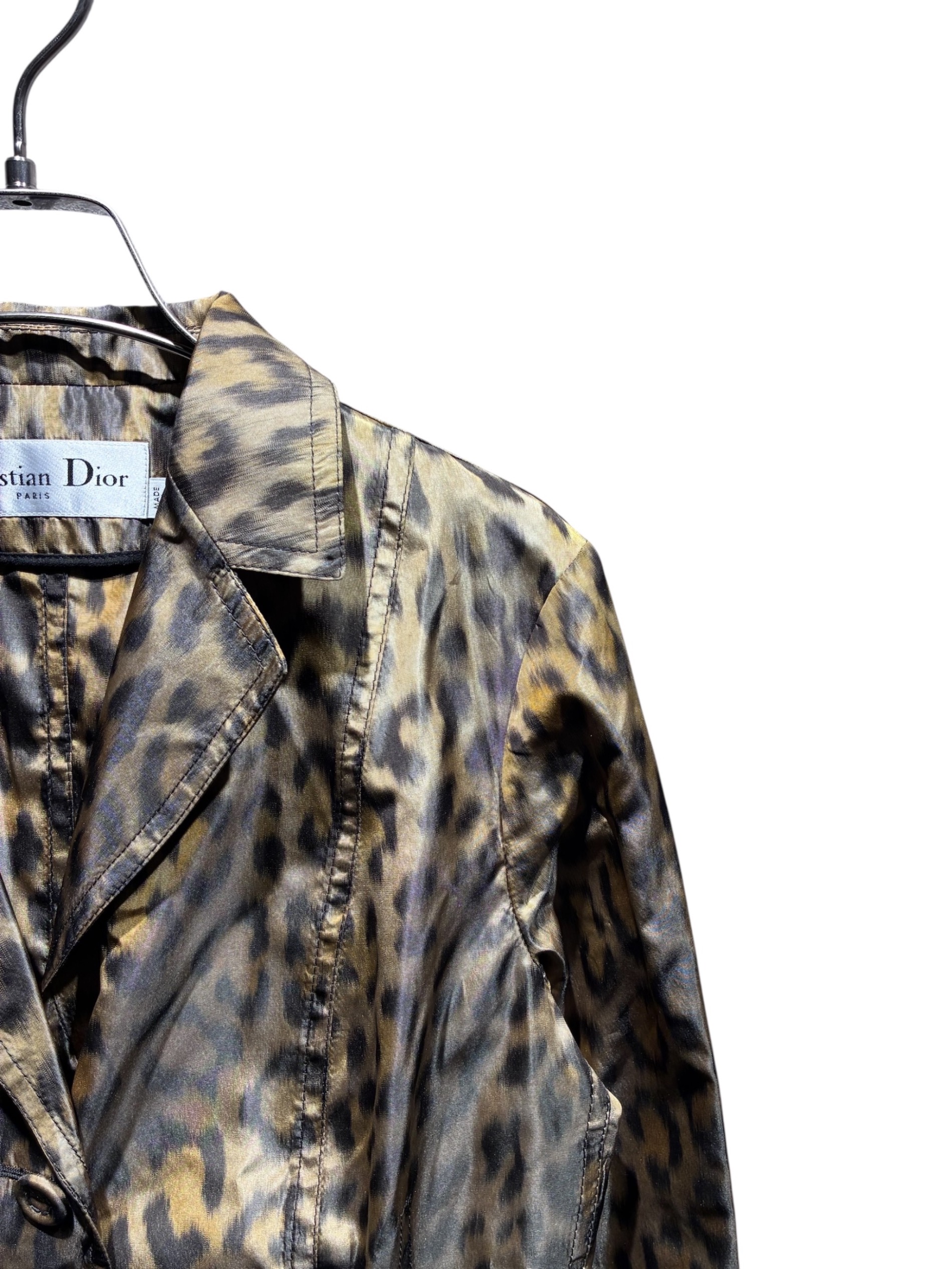 | スタッフコメント | Christian Dior(クリスチャンディオール)レオパードジャケットは、シルク素材を使用した上質なテーラードジャケット。存在感のあるレオパード柄とすっきりとしたシルエットが魅力で、デニムからスラックスまで幅広くコーディネート可能。軽やかな着心地で装いの主役になる一着です。 |