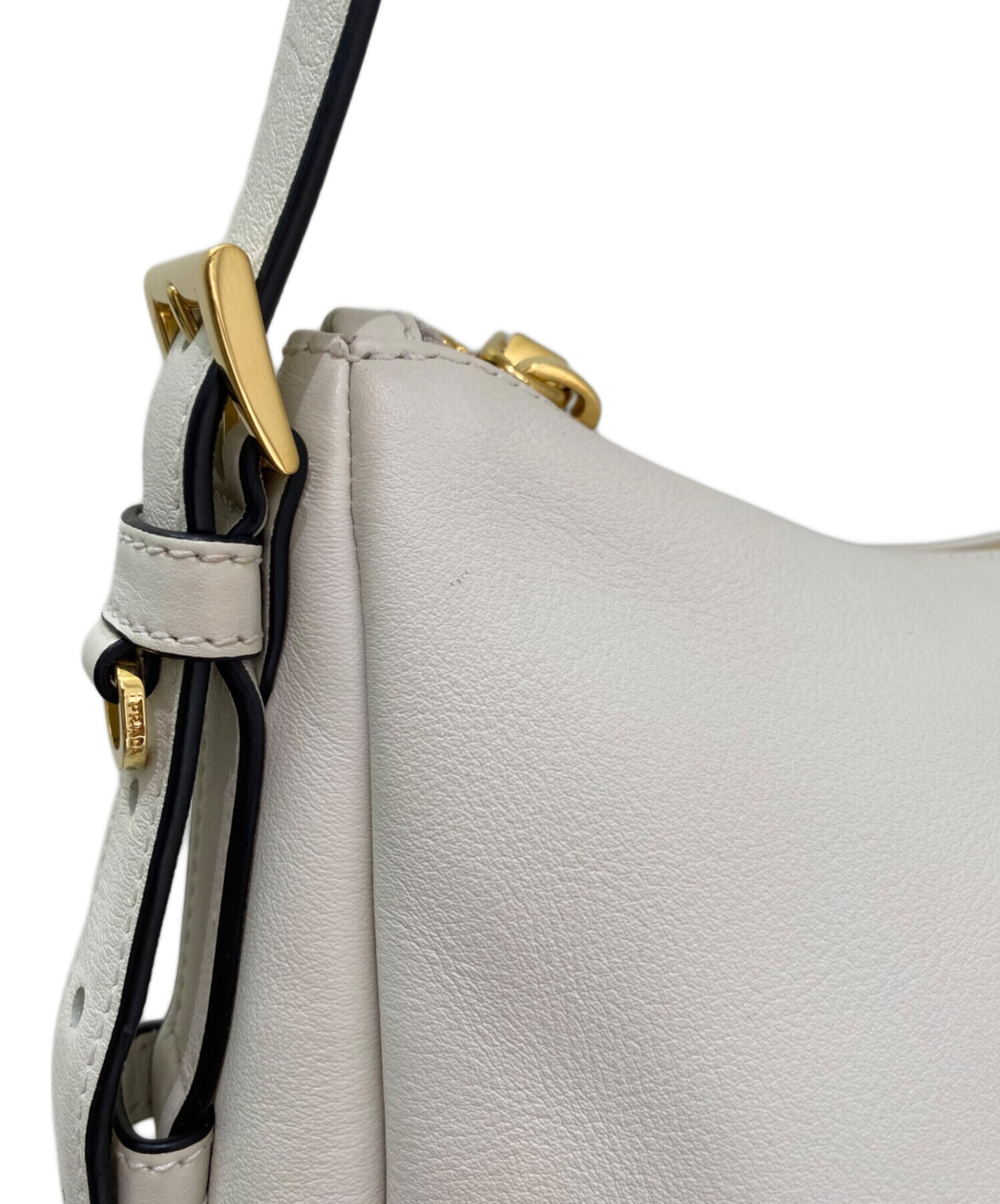 | スタッフコメント | PRADAのショルダーバッグでございます。柔らかなソフトグレインレザーで仕立てられたしなやかなフォルムが魅力で、肩に自然にフィットするエレガントなシルエットに仕上げられています。フロントにはアイコニックなトライアングルロゴを配し、さりげないアクセントに。収納力のあるサイズ感でデイリーにも使いやすく、上品でモダンなスタイルを演出します。 |