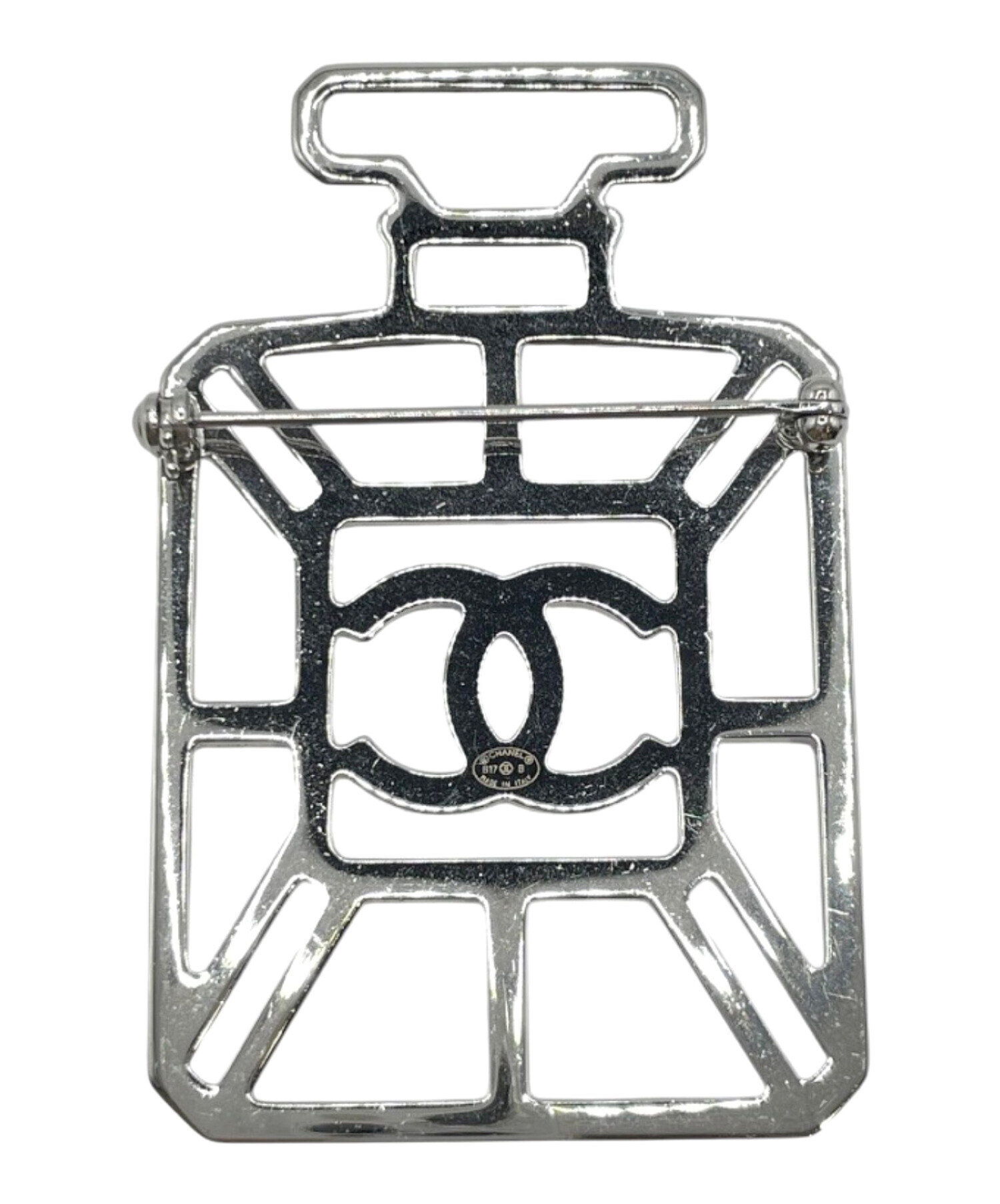 | スタッフコメント | CHANELのココマーク 香水モチーフ ラインストーンブローチでございます。ブランドを象徴するココマークと香水ボトルデザインに繊細なラインストーンをあしらい、華やかで遊び心のある仕上がりが魅力でございます。上品な輝きが胸元にアクセントを添え、ジャケットやワンピース、ニットなど幅広いスタイリングに活躍いたします。 |