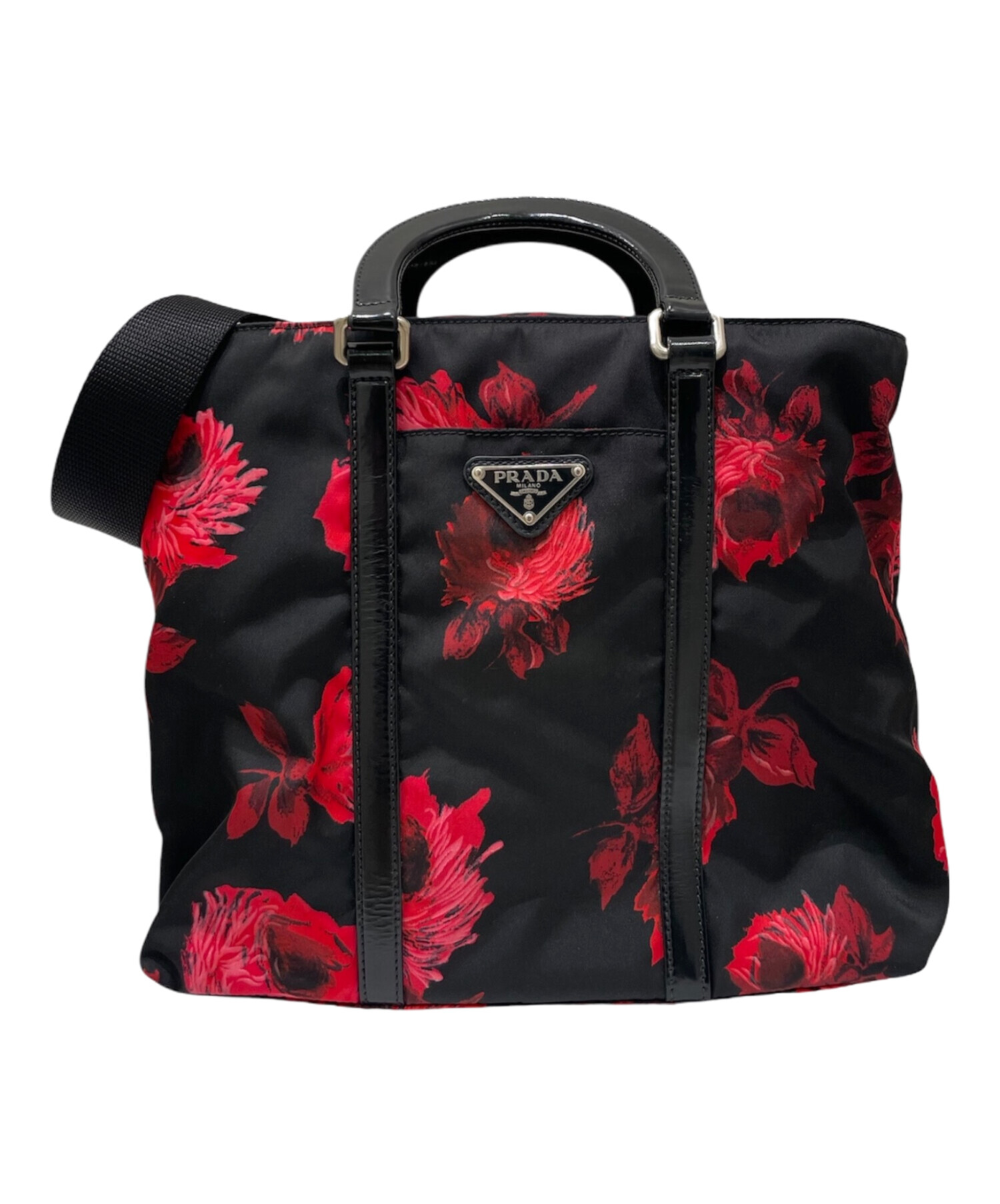 | スタッフコメント | ブランドを象徴するナイロン素材に、華やかな花柄をあしらった印象的なデザインのお品物でございます。軽量で扱いやすく、ハンドバッグとショルダーの2WAY仕様によりシーンに応じた使い分けが可能です。 |