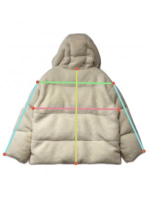 | 素材 | 表地: ポリエステル 100% パイル部分: ポリエステル 97% 毛 3% 中わた: ダウン 90% フェザー 10% 裏地: ポリエステル 100% 別布: ナイロン 100% |