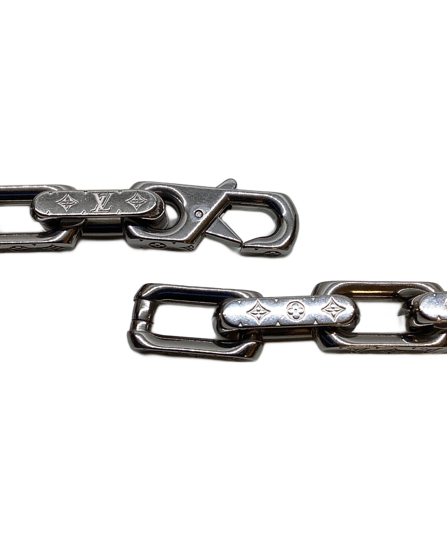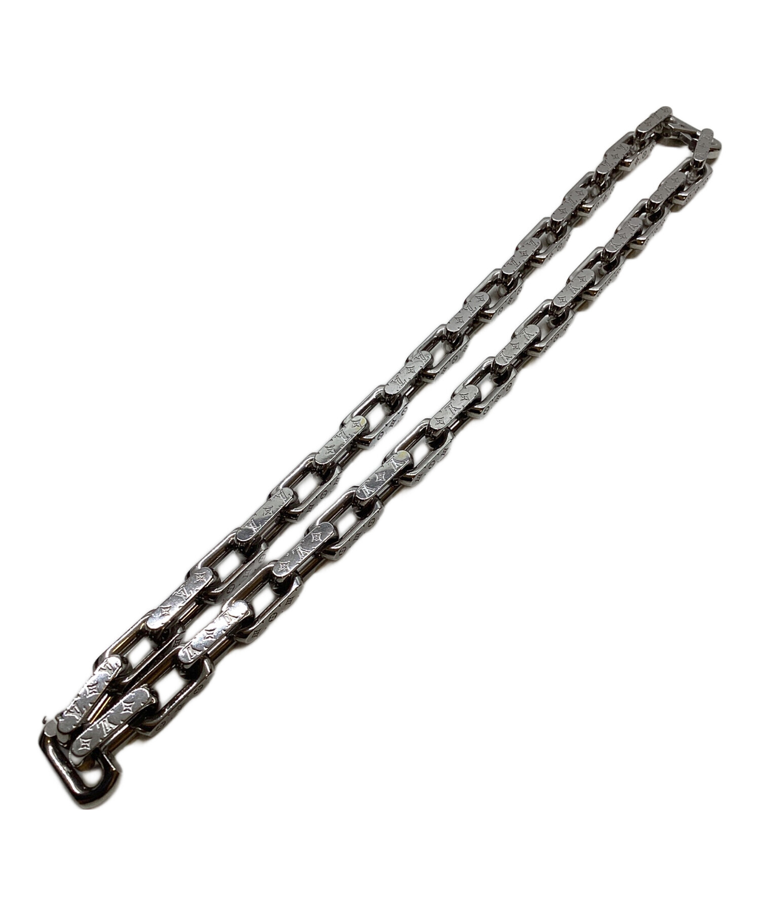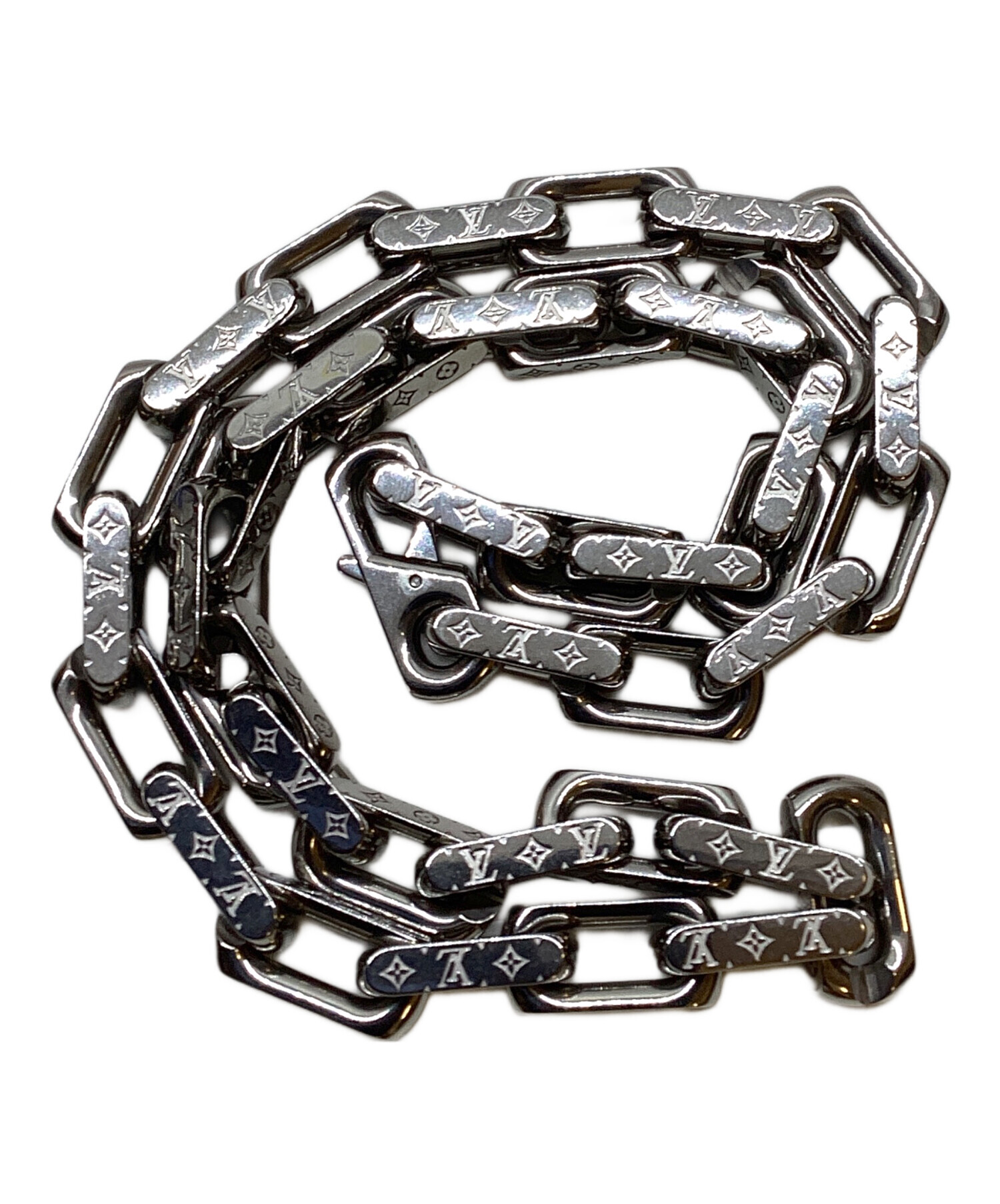 | スタッフコメント | LOUIS VUITTON(ルイ ヴィトン)のネックレス・チェーン、モノグラム。 高級感のあるシルバーカラーのチェーンに伝統的なモノグラムパターンが刻まれています。 シンプルながらも存在感のあるデザインはカジュアルなコーディネートにもピッタリ。 |