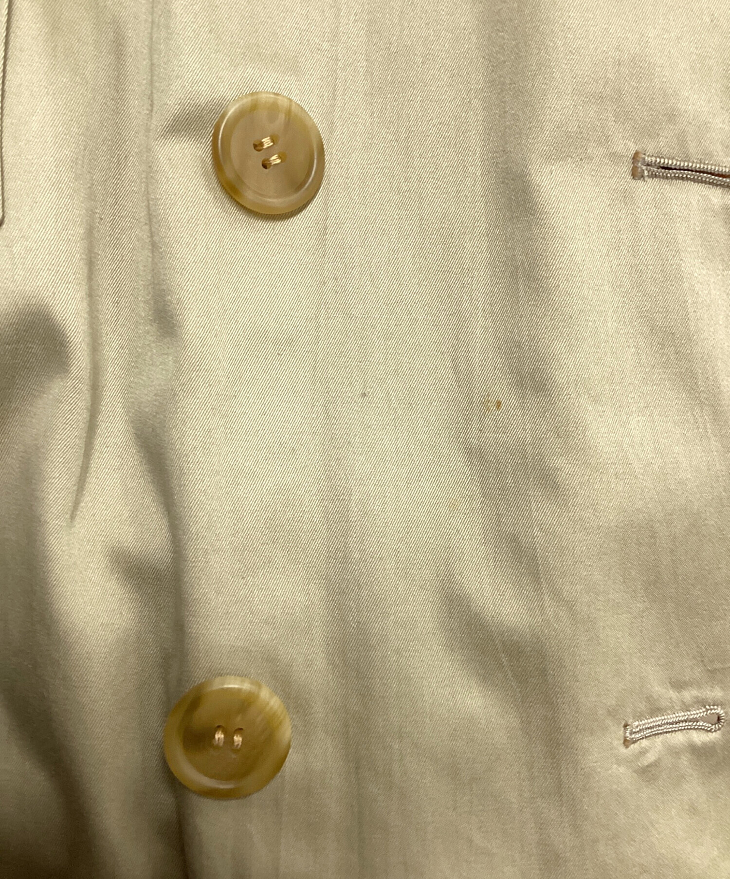 • Burberry's(バーバリー)Burberry's (バーバリーズ) トレンチコート ライトグリーン サイズ:SIZE 7AR/約Sサイズの古着・服飾アイテム 正面ボタン部、ヨゴレあり