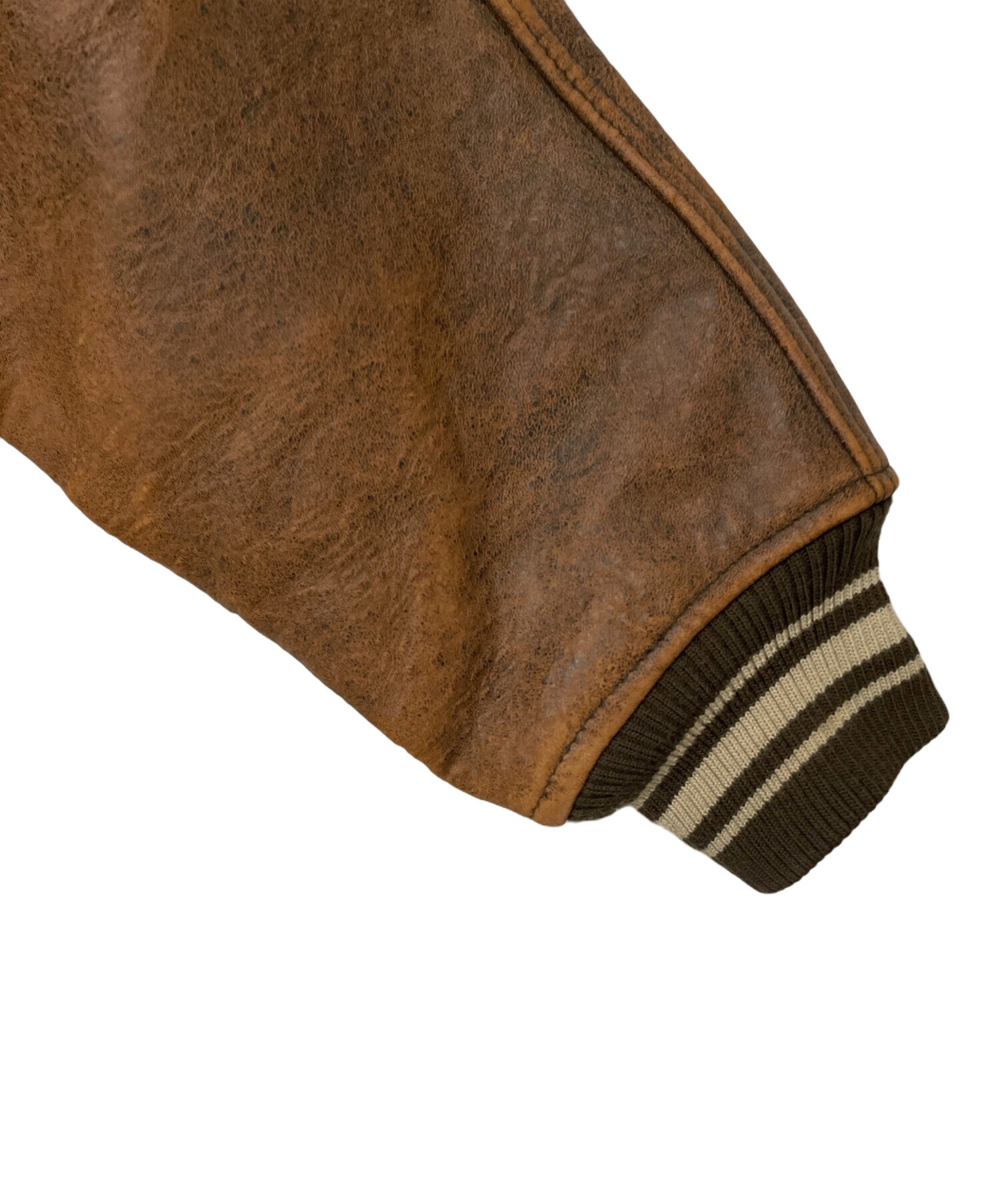 | 状態 | 使用感が目立ちジッパーが固くなっておち、レザーの変色やリブ部分の毛羽立ちがございます。こちらの商品は中古品の為、使用に伴いますキズ、汚れが各所に見受けられます。店頭にて展示販売を行っている為、記載に無い細かなキズ、汚れが見受けられる場合がございます。 |