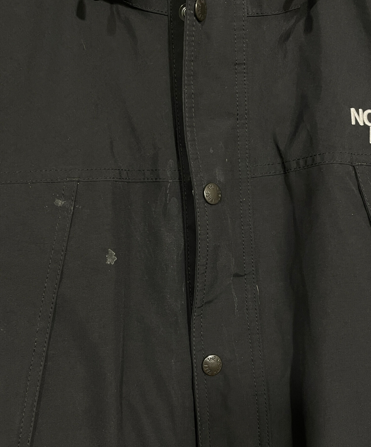 • THE NORTH FACE(ザ ノース フェイス)THE NORTH FACE (ザ ノース フェイス) マウンテンライトジャケット ブラック サイズ:Mの古着・服飾アイテム 前面に汚れあり