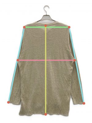 当サイトでは商品の表記サイズの他に、出品商品を採寸しサイズを記載しております。また、実際のアイテム画像を使用した計測とイラストを使用した計測の2パターンがございます。