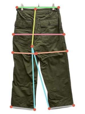 ウエスト周り約75cm ヒップ周り約102cm もも周り約64.5cm 裾周り約45cm 股上(後ろ)約35cm 股下(後ろ)約59cm