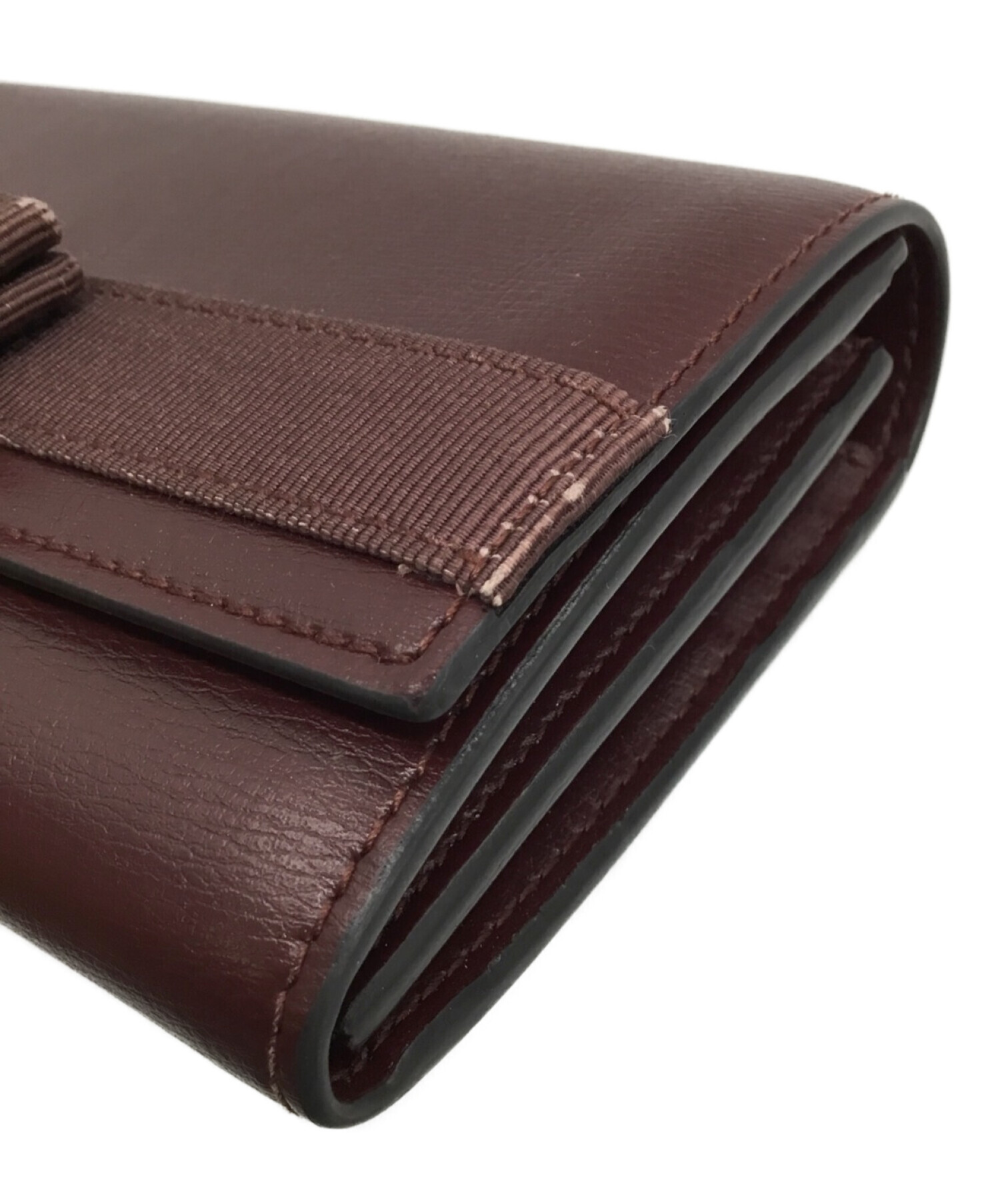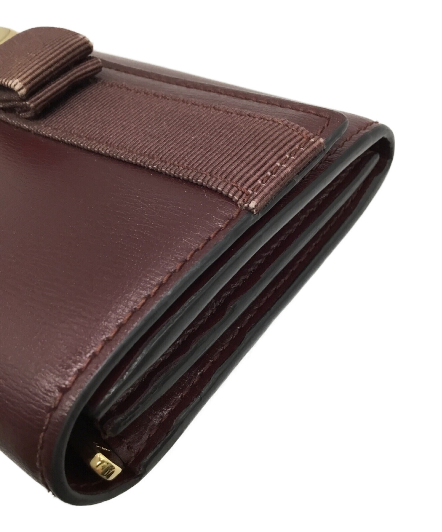 | スタッフコメント | フェミニンなリボンモチーフに輝きのあるメタルカラーのパーツを組み合わせた長財布になります。 内側は中央に小銭入れ、両サイドに札入れと豊富なカードケースを備えた使い勝手のよいデザインです。 |